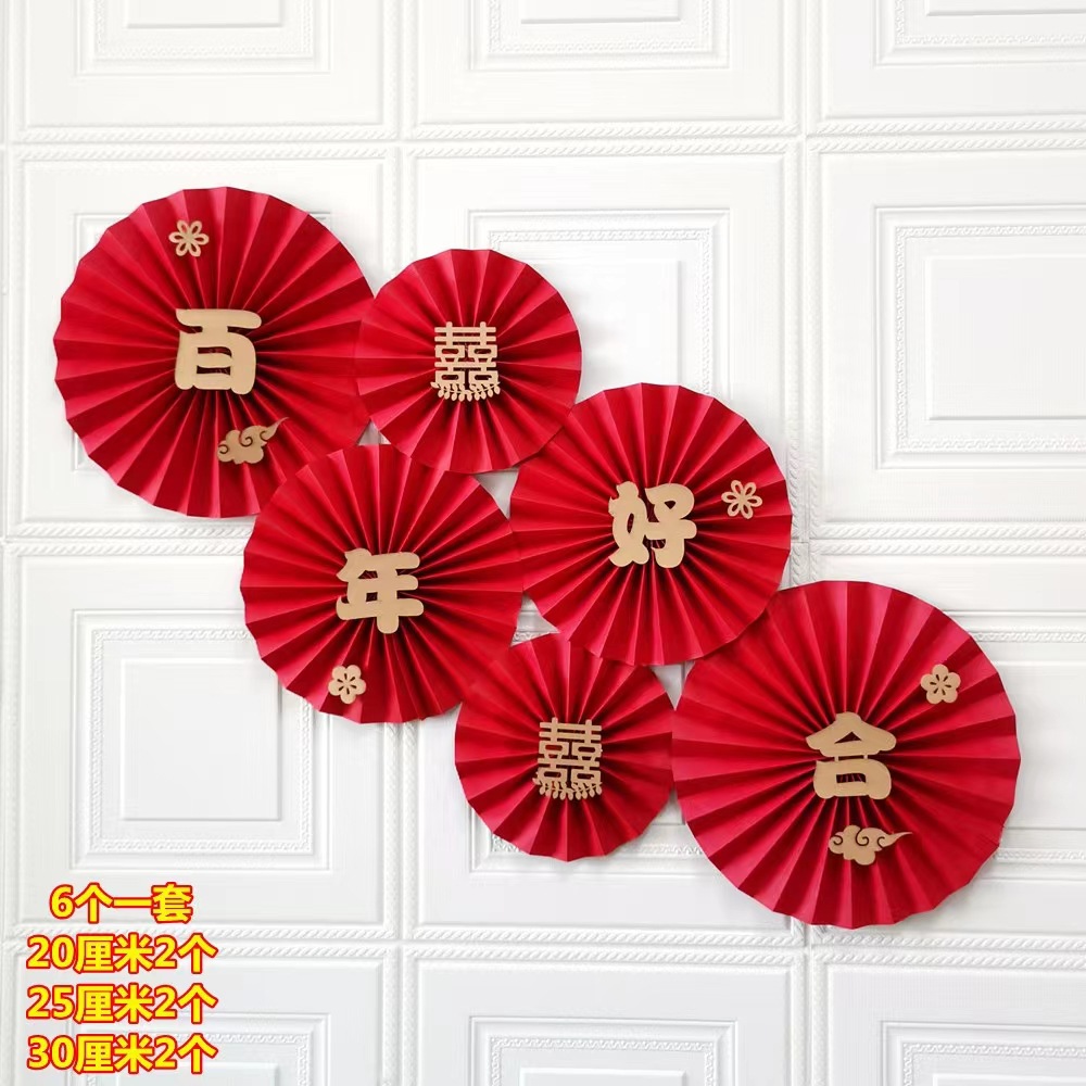 婚房布置纸扇花中秋节日乔迁之喜纸花扇结婚用品国庆新年婚房装饰