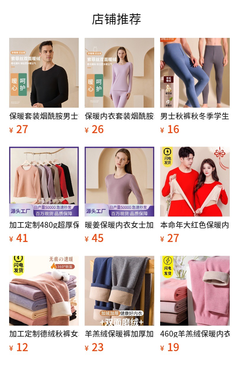 保温セット、温姜繊維秋冬保温下着、デロン加厚秋服・秋パンツ、レギンス、卸売販売中