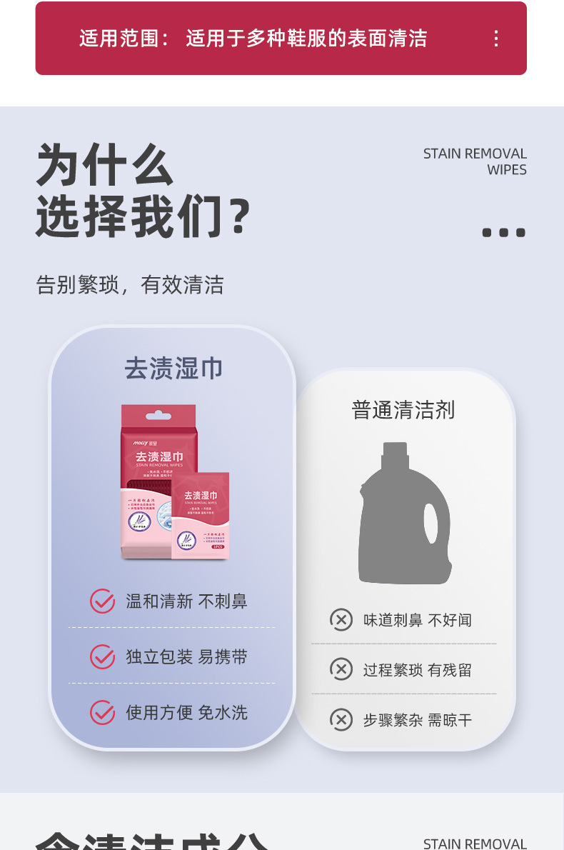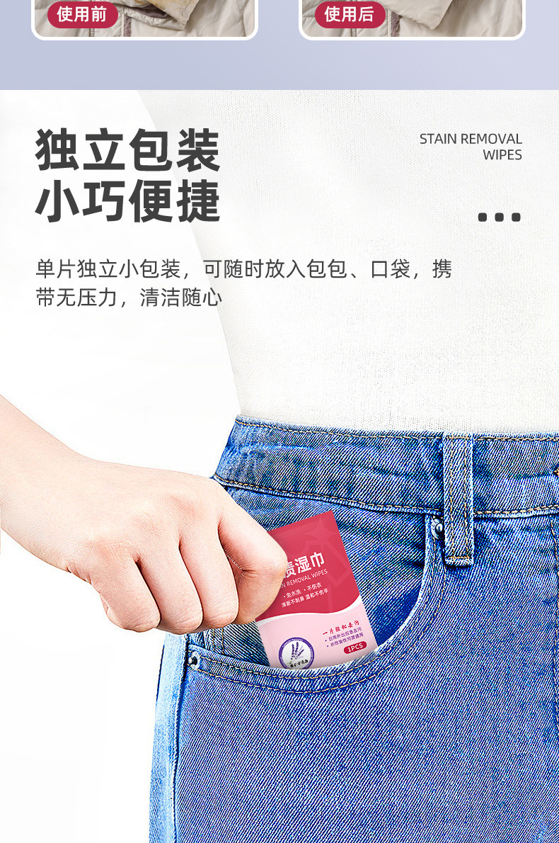 Melly衣類の汚れ取りウェットティッシュ使い捨て携帯用緊急汚れ取り洗濯なしダウンジャケット