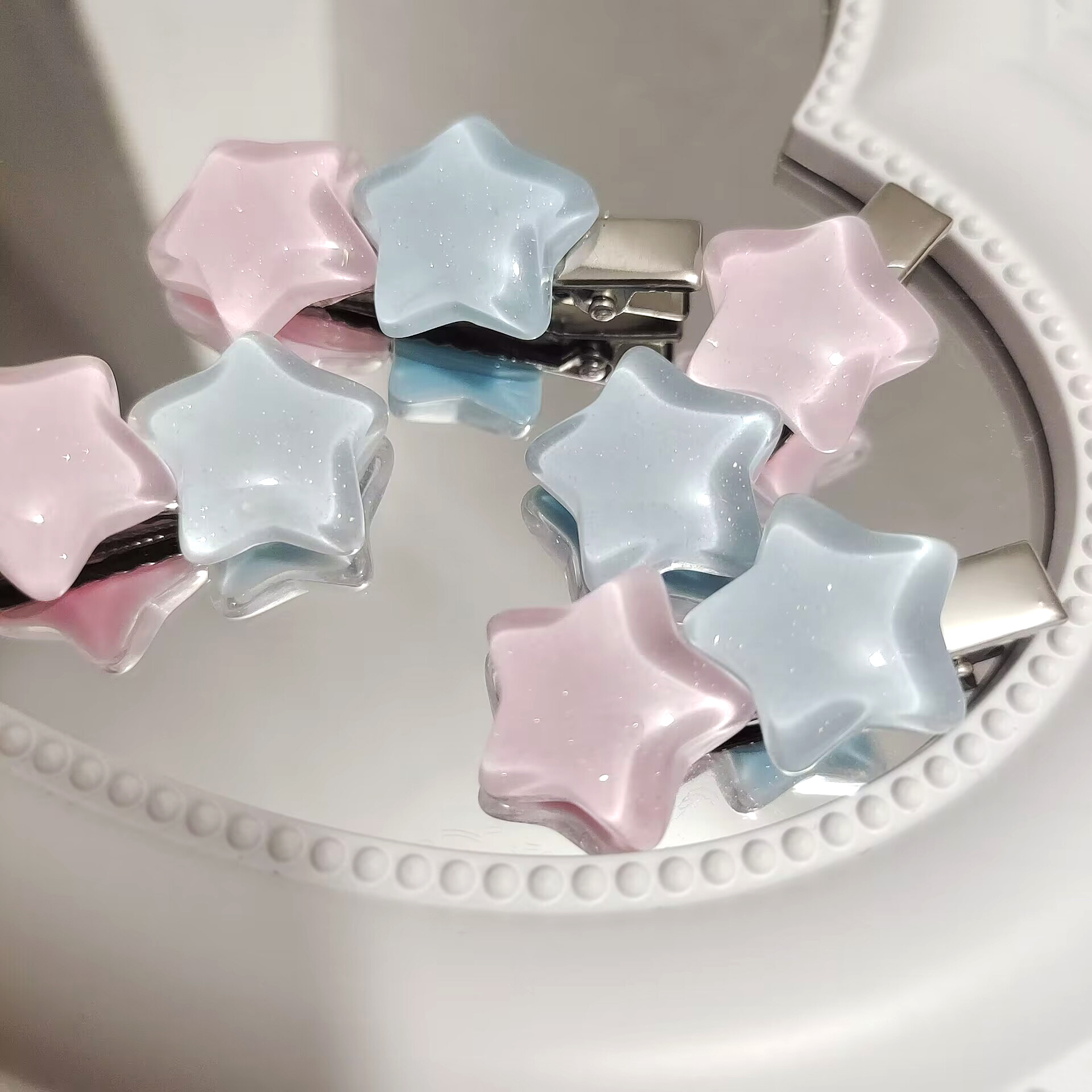 少女の心の細いきらきらした青い粉の星のヘアピンinsの甘い学生の前髪の縁はかわいい五角星のヘアピンを挟みます。