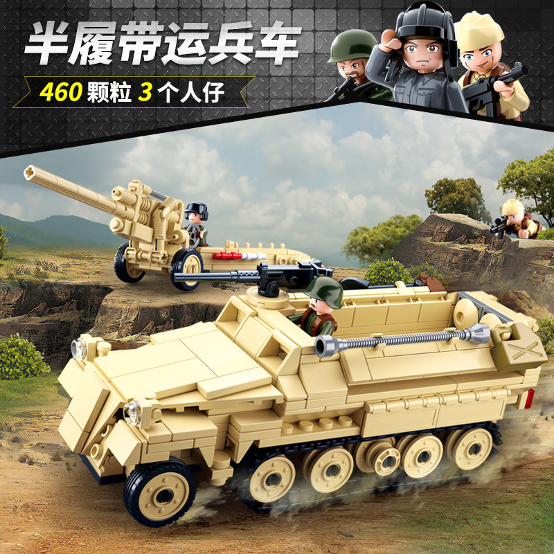 小鲁班二战之诺曼底登陆战役军事坦克车男孩益智积木拼装模型玩具