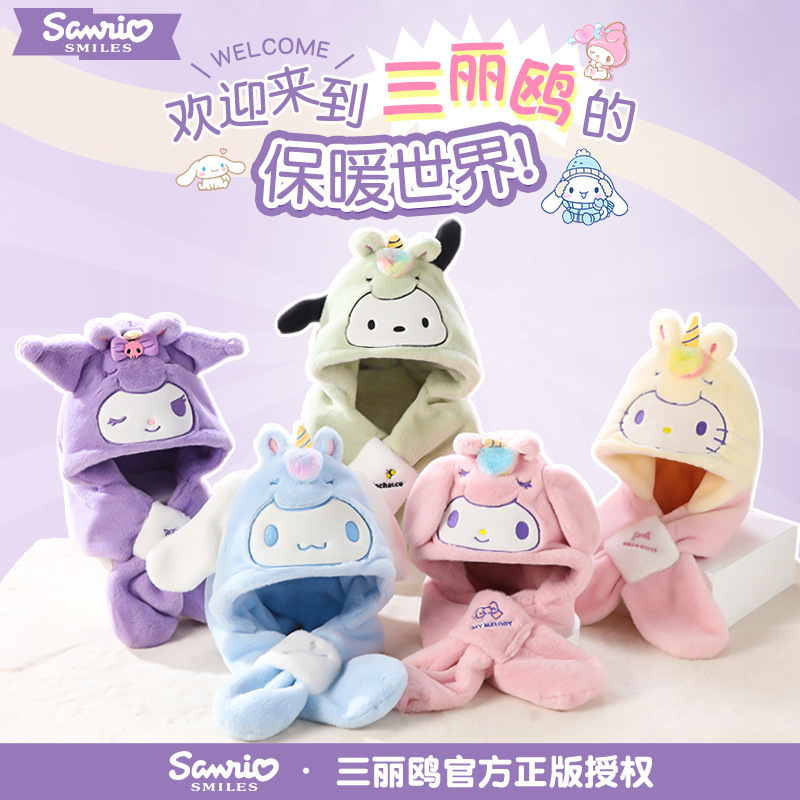 サンリオ成人帽子女性ファッション秋冬防寒保温アニメかわいいぬいぐるみ韓系エア動耳帽子