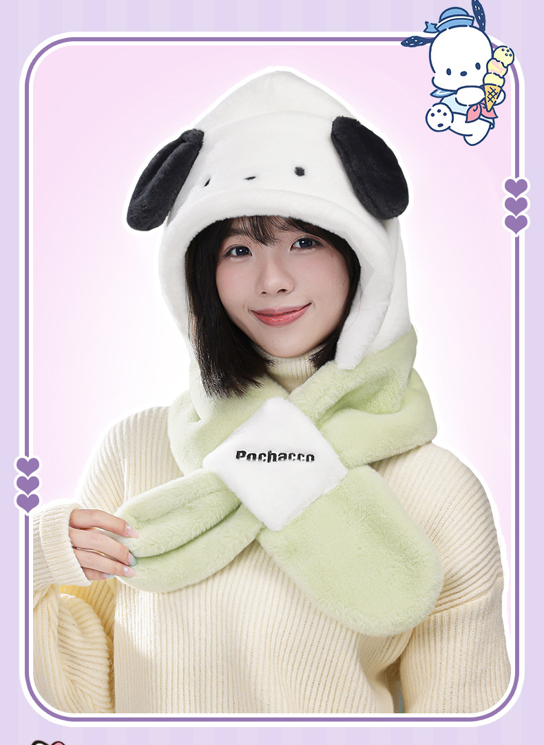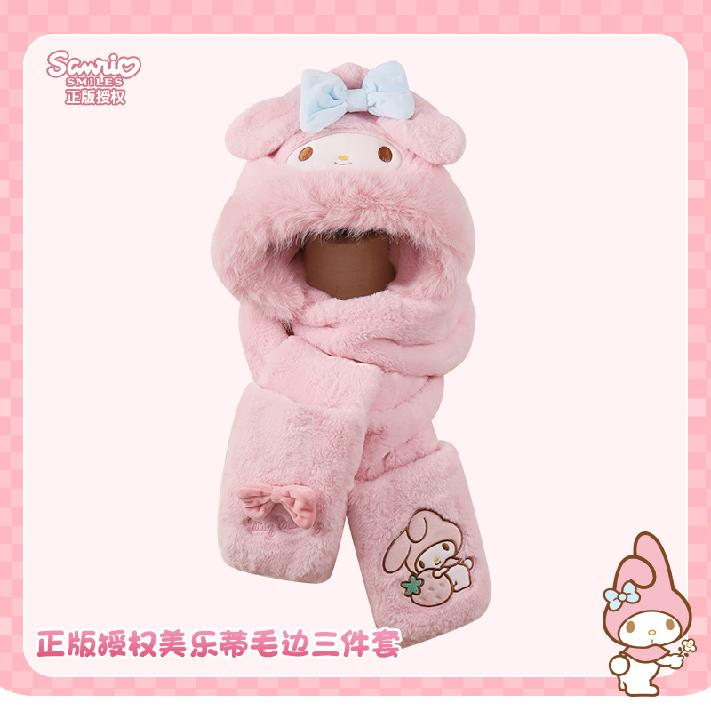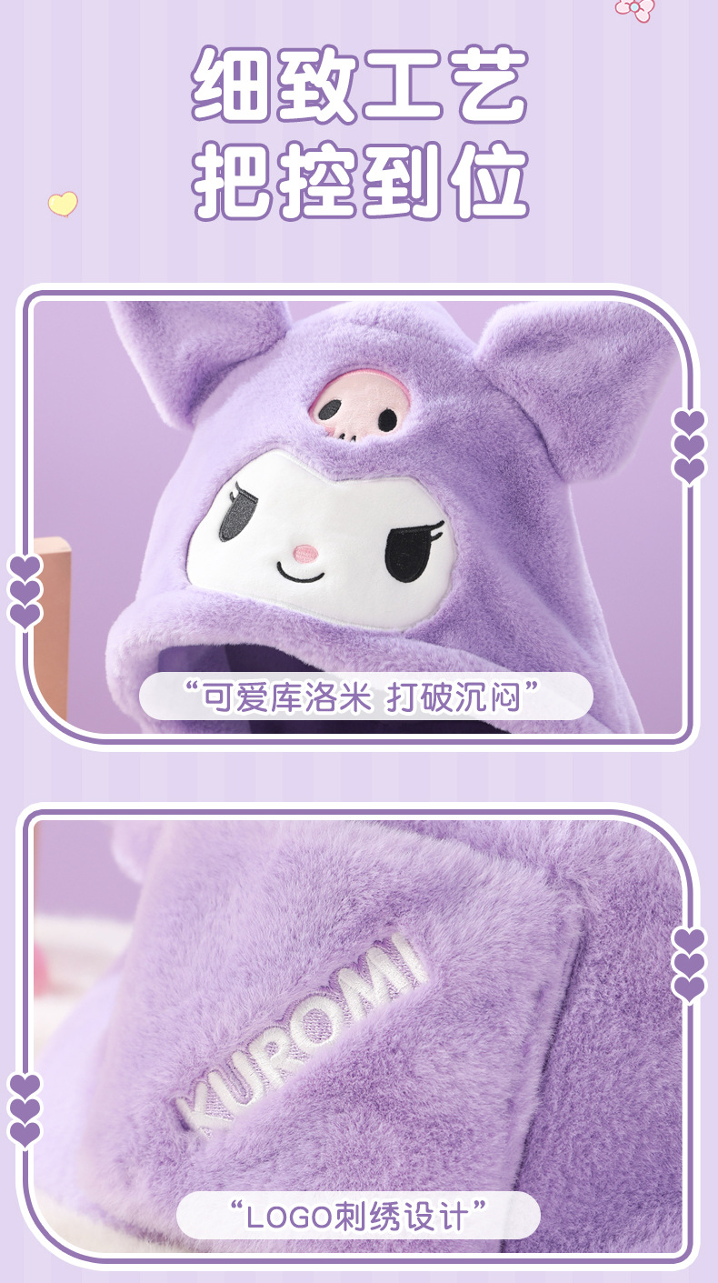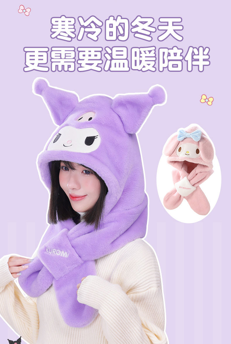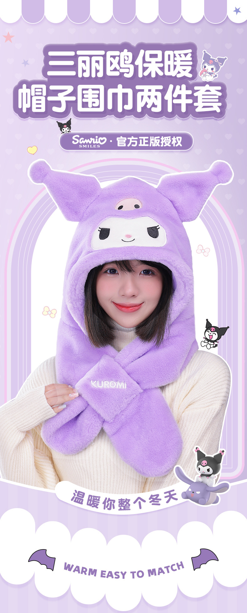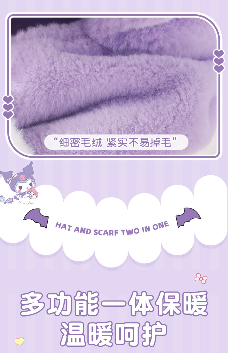 サンリオの正規版のかわいいアニメの少女の心の高い顔の値の冬の組み合わせのクロミの2つのセットの帽子のマフラーは暖かいです。