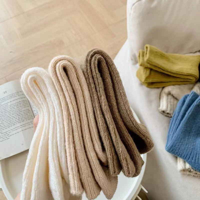 秋冬の新型ウールのカシミヤの靴下の女性の厚い中筒の靴下の日本の純色の韓国版の保温の縦縞の女性の靴下