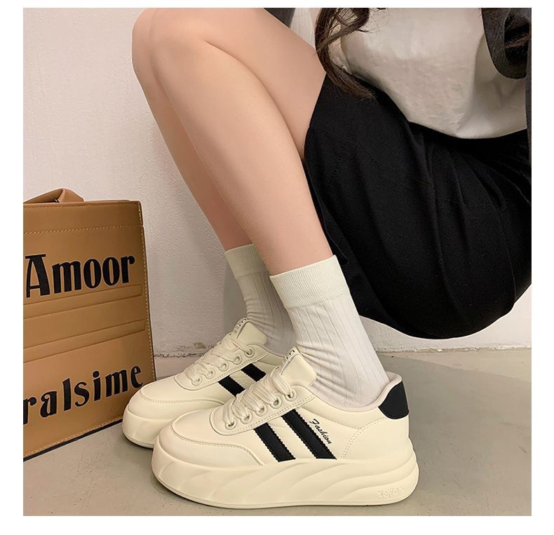 黒の厚い底が高くなったカジュアルな板靴2025春の大頭小僧と同じ靴カップルの板靴のデザイン感