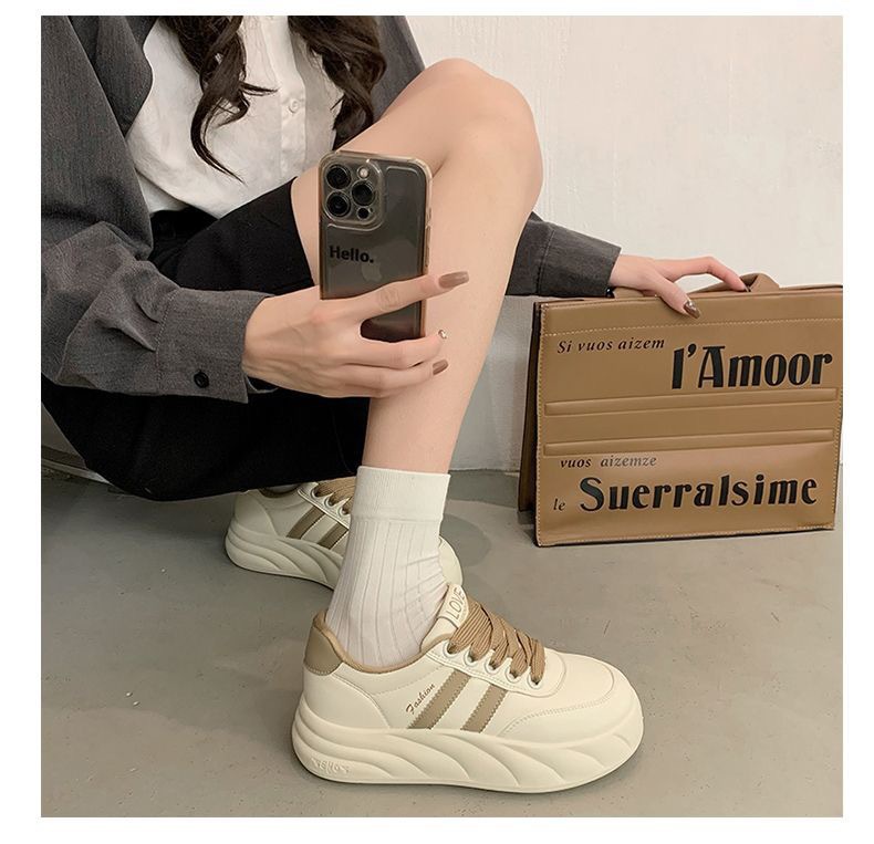 快適な醜い萌え大頭パンの白い靴の女性2024年春夏の新しい厚い底が高くなった