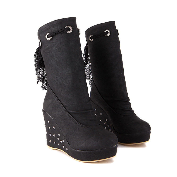 【颜色】黑.白.米.桔【跟高】:后高9.8CM前高2.5cm【底子】:TPR坡跟底【面料】:裘皮纹PU【里子】:550g精细内毛【筒高】18.8CM【筒围】32.5CM【鞋码】:34-39