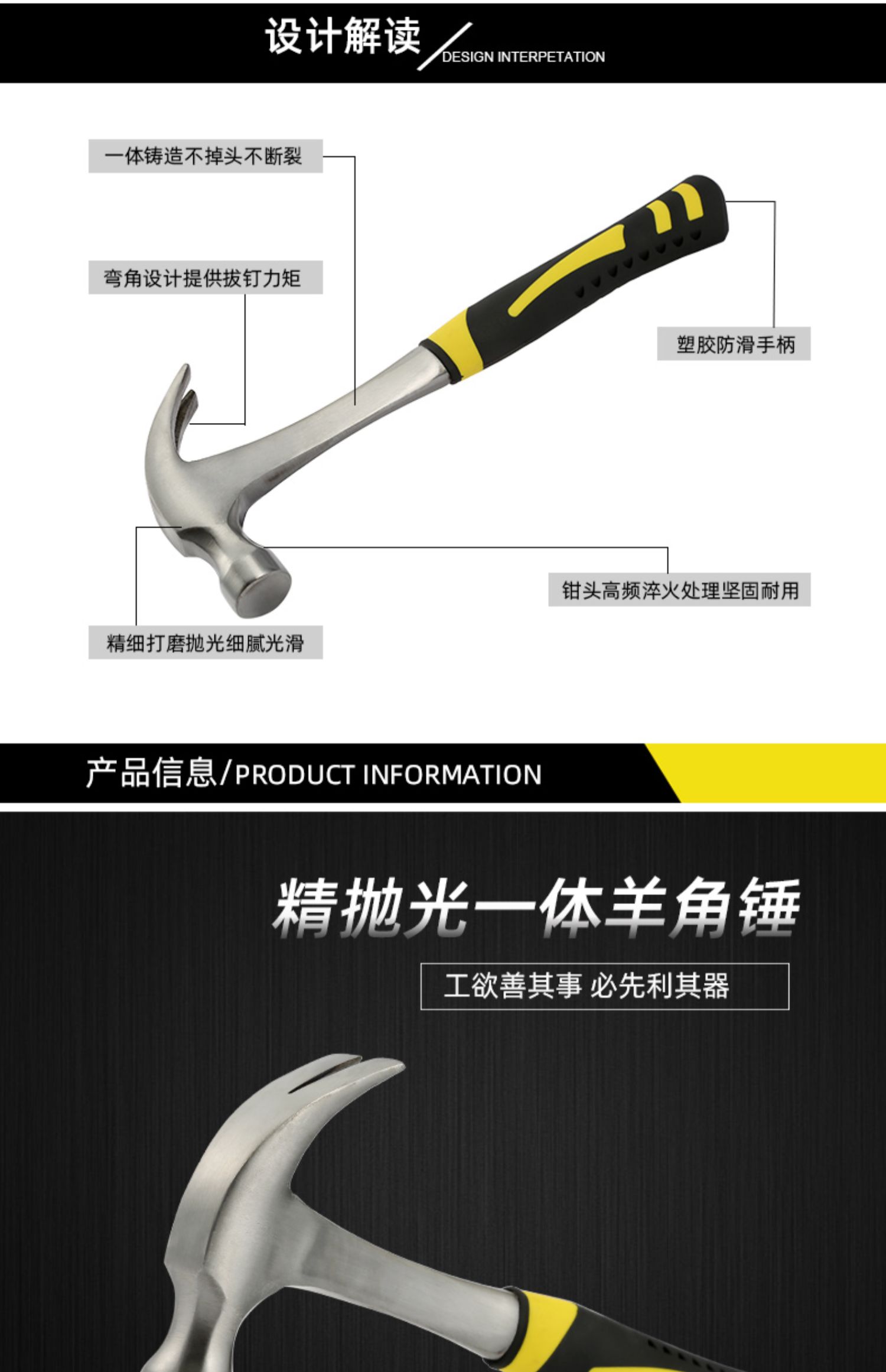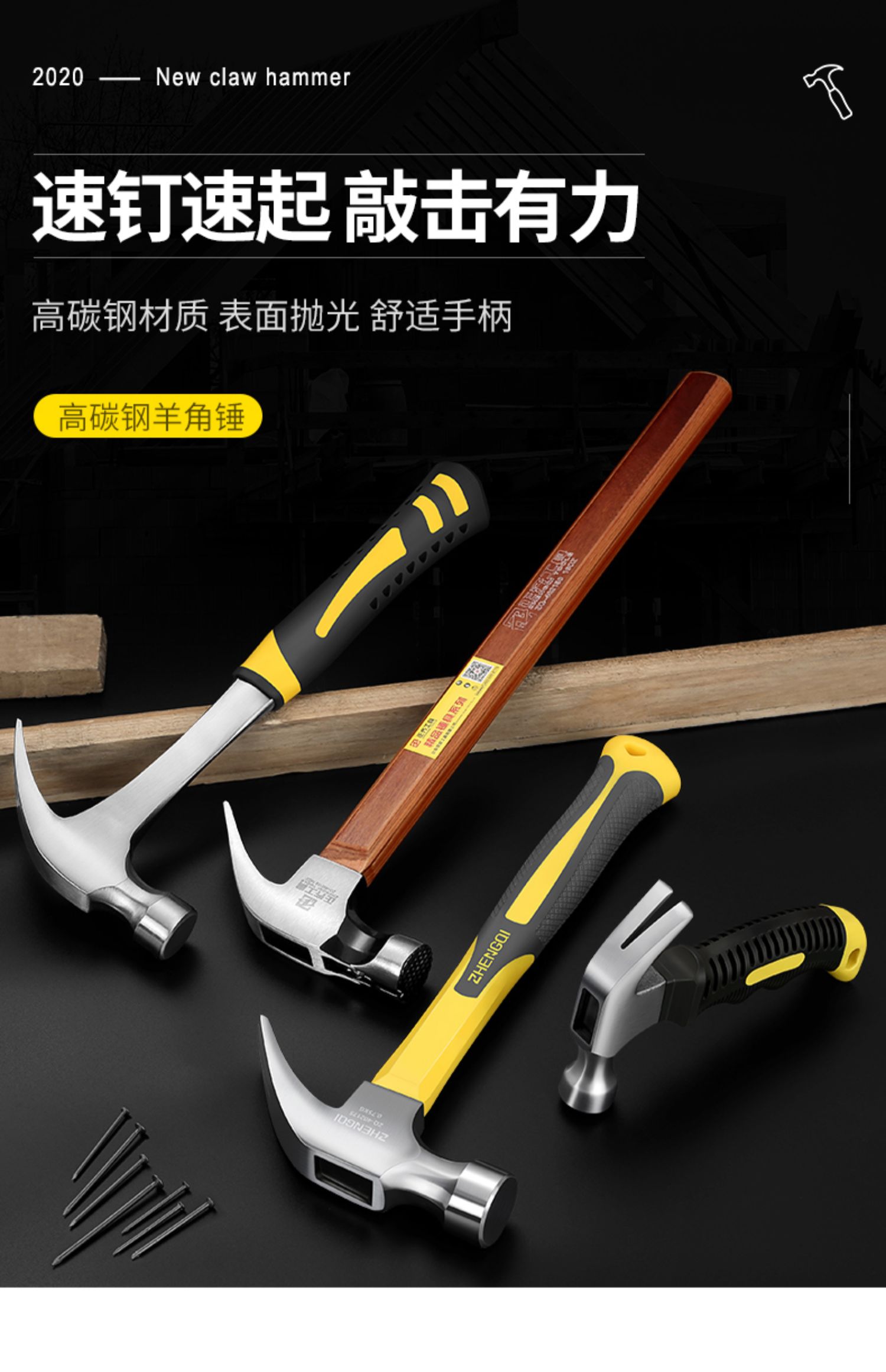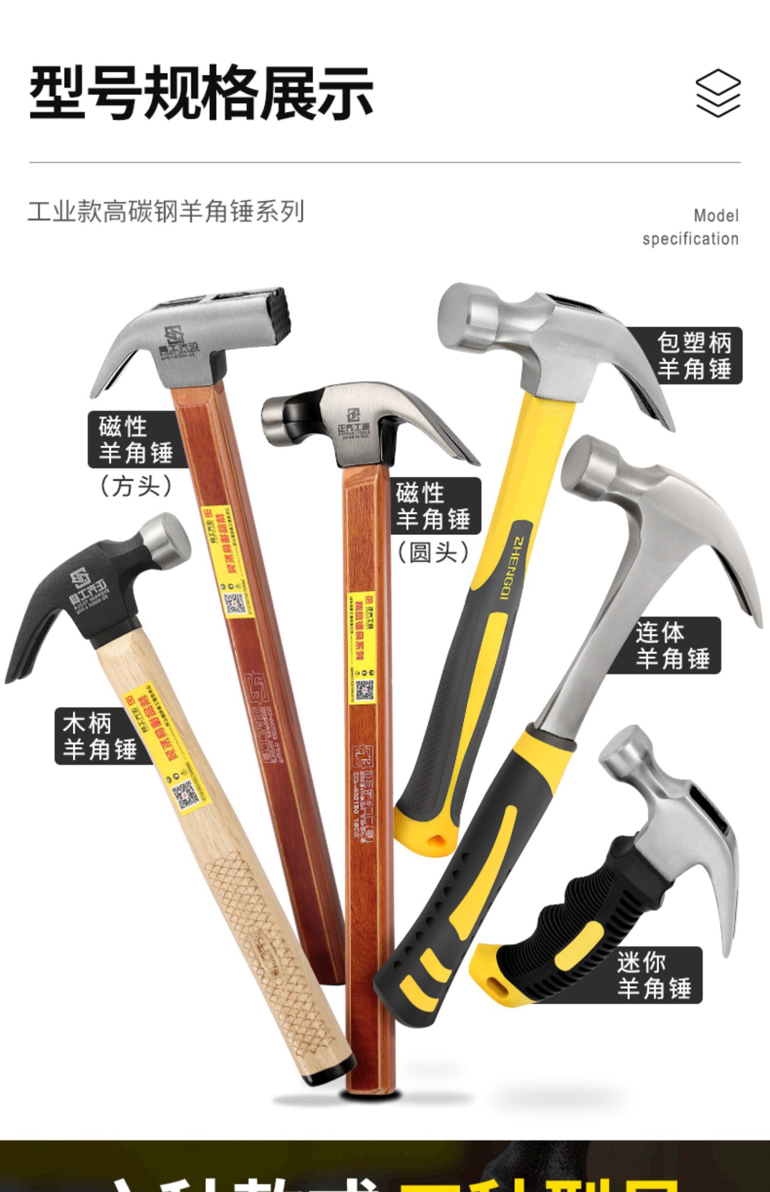 大工のハンマーのハンマーのハンマーのハンマーの小さいハンマーの金属の工具の工事現場の連体の中実の高炭素鋼の丸い頭の羊の角のハンマー