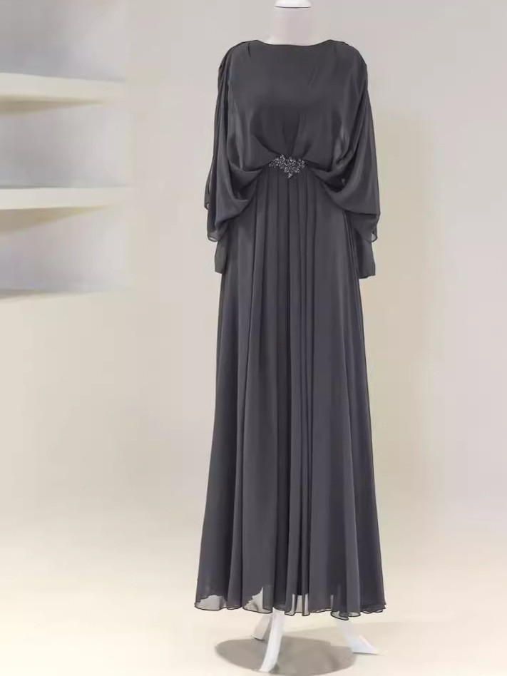 2025秋冬新款外贸女装中东迪拜百搭简约时尚气质收腰吊坠连衣裙女