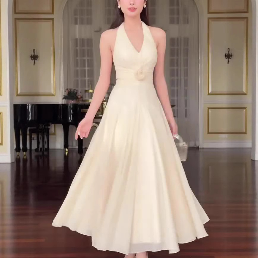 Amazon 2025 新しい夏のヨーロッパとアメリカの貿易ファッション気質立体フラワーホルターネックノースリーブホリデードレス