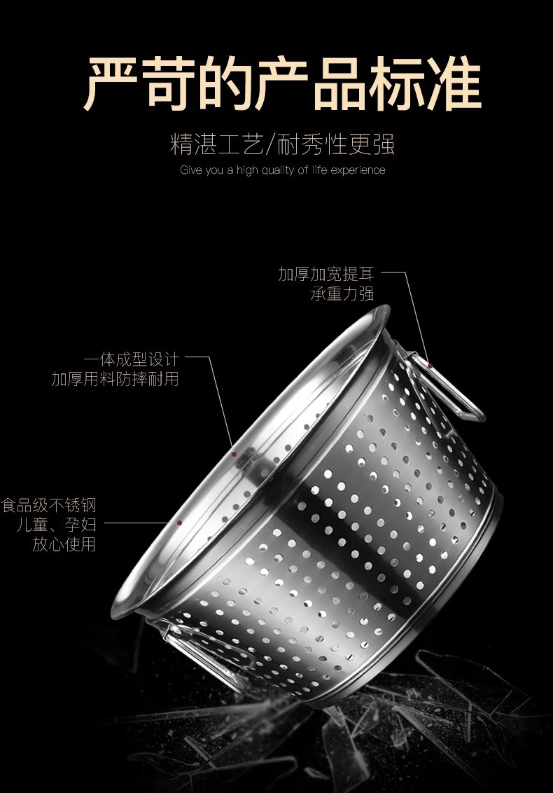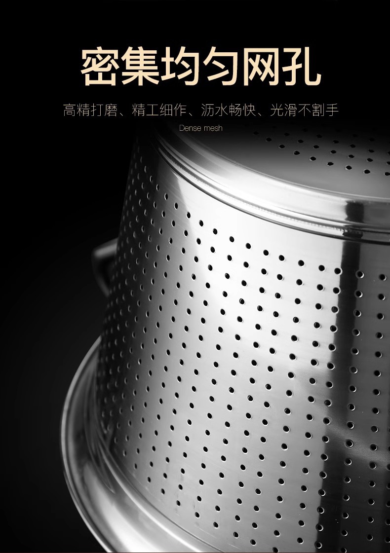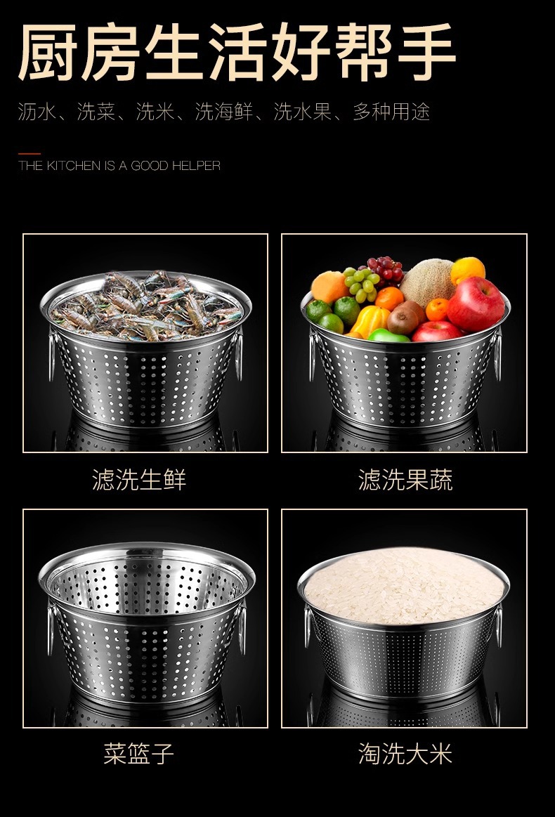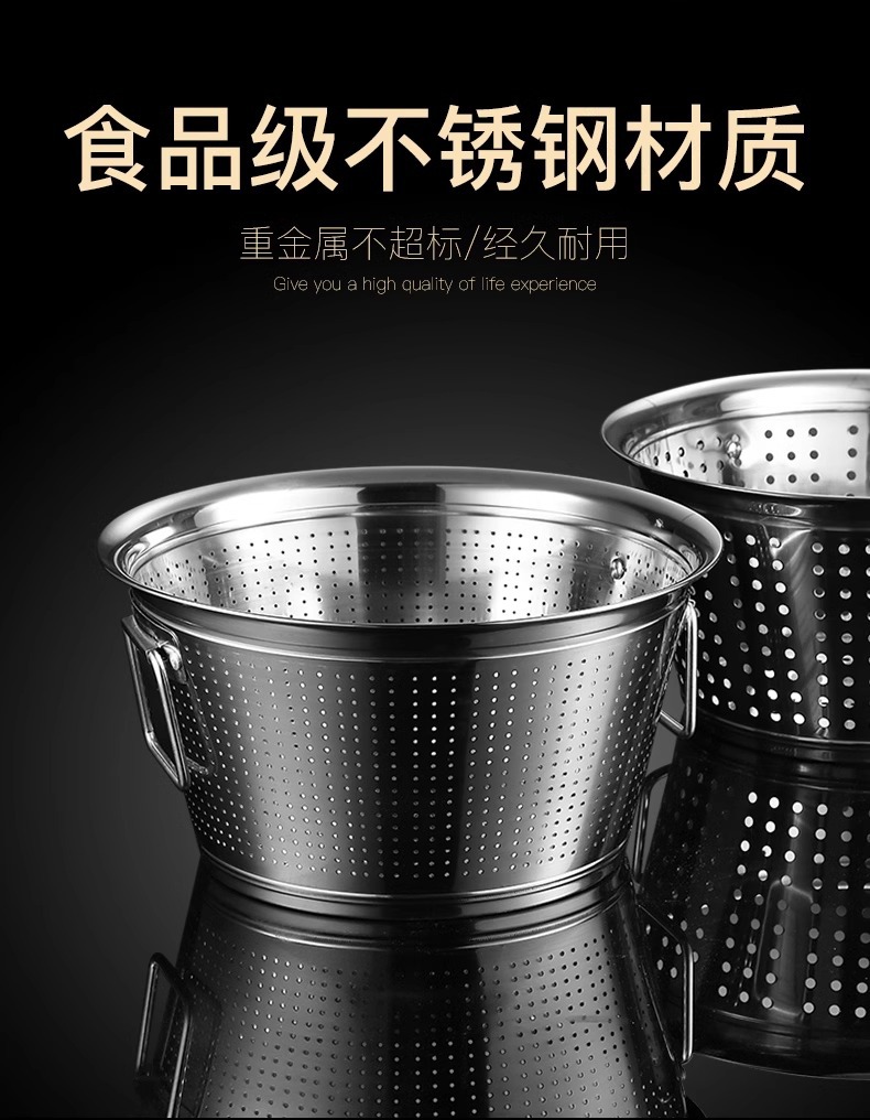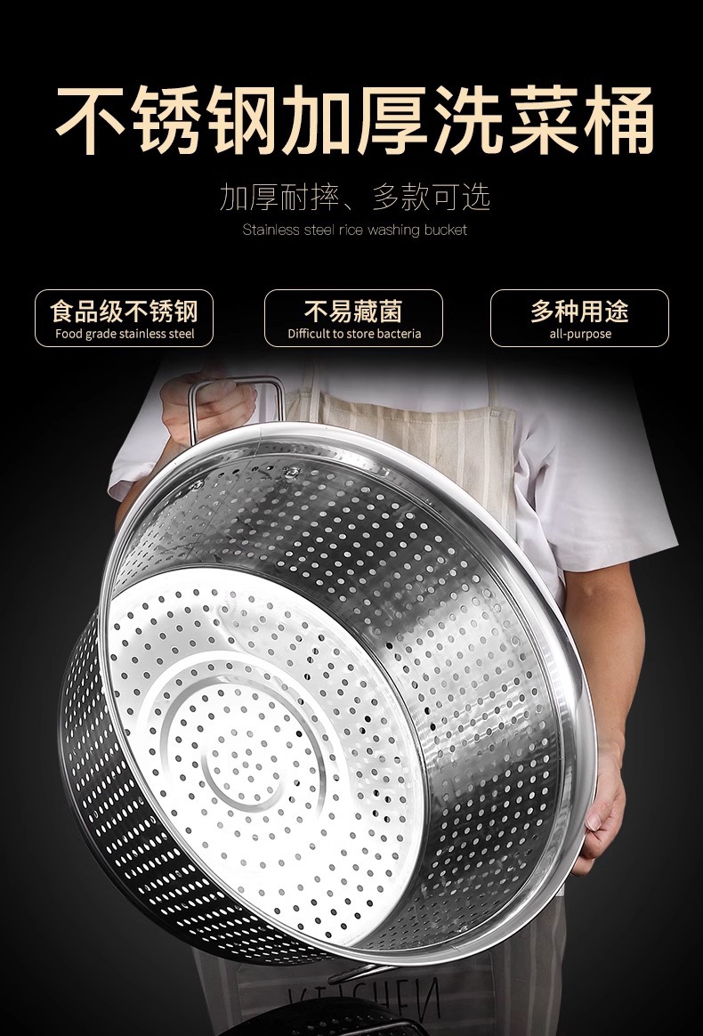 淘米箩不锈钢漏盆商用洗米神器食堂洗菜盆滤水桶沥水篮大号洗米筛