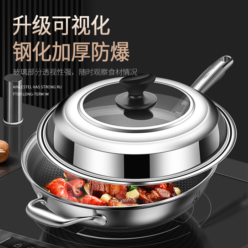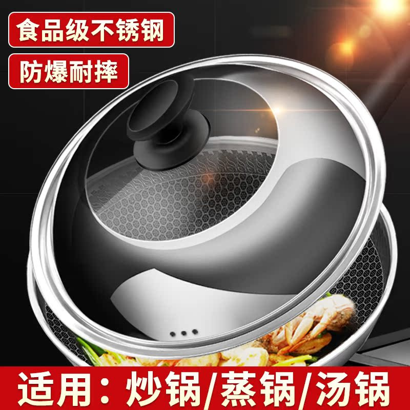 304ステンレスの鍋の蓋の家庭用の鍋の万能の通用の蓋の厚い炒め物の鉄鍋の丸い型の耐熱ガラスの蓋