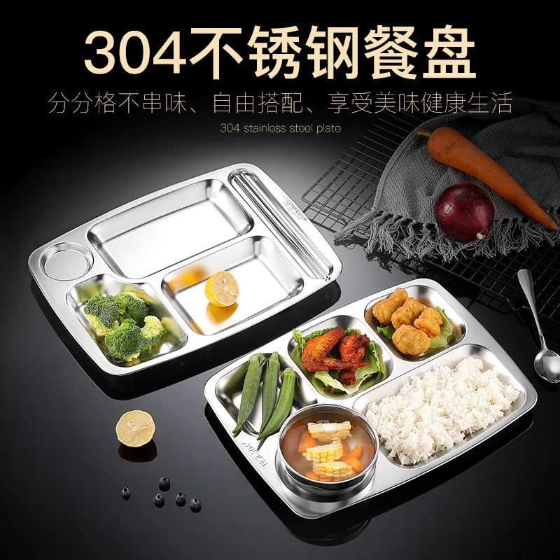 304ステンレスの食事皿の厚い長方形の成人のファーストフードの皿の5格の6格の学生の分格の商用の弁当箱のセット