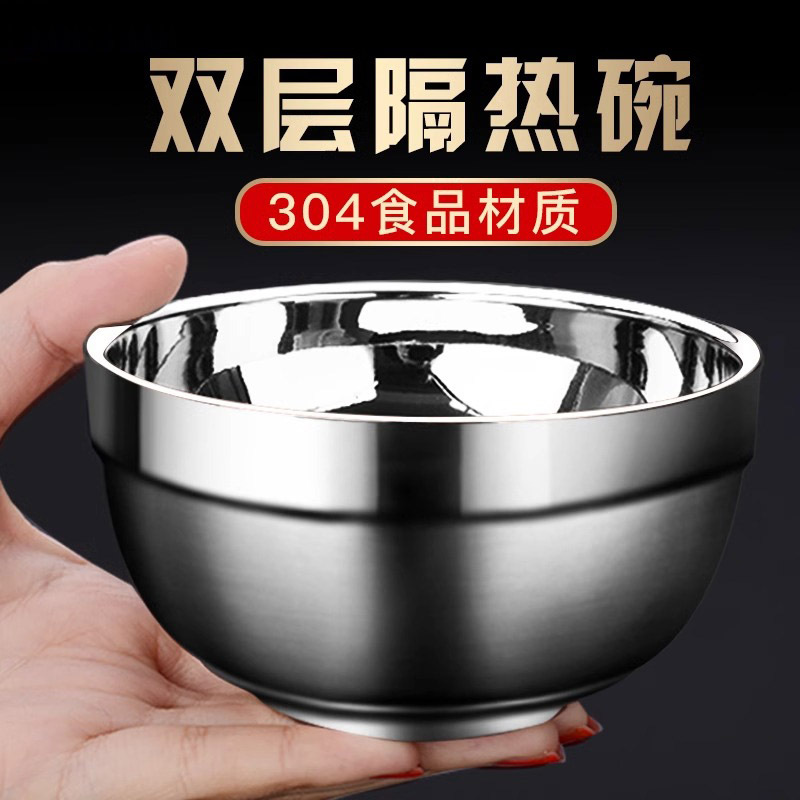 ステンレス茶碗304食品級二重断熱碗家庭用子供用防熱碗スープ碗どんぶり厚い鉄碗