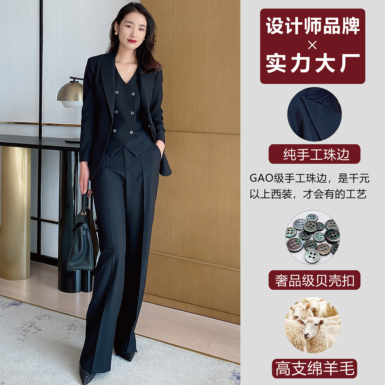 【品牌专供】春秋羊毛西服高级感 职业装修身西装马甲直筒裤3件套