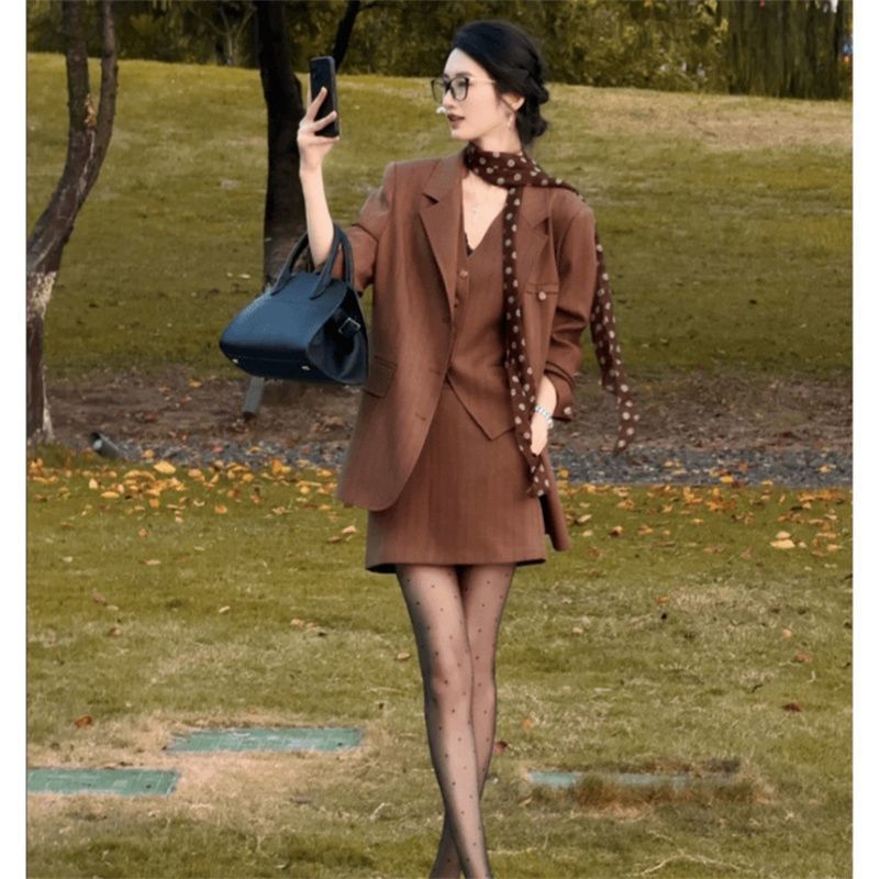 高级感职场套装女秋季西装外套马甲背心韩风chic一整套穿搭包臀裙