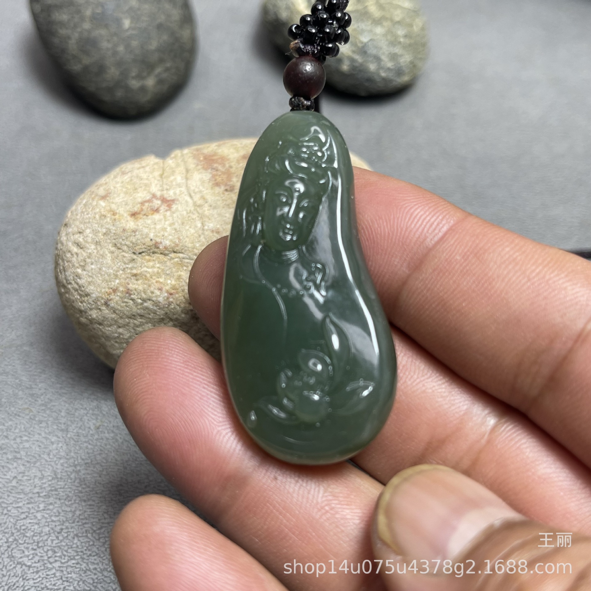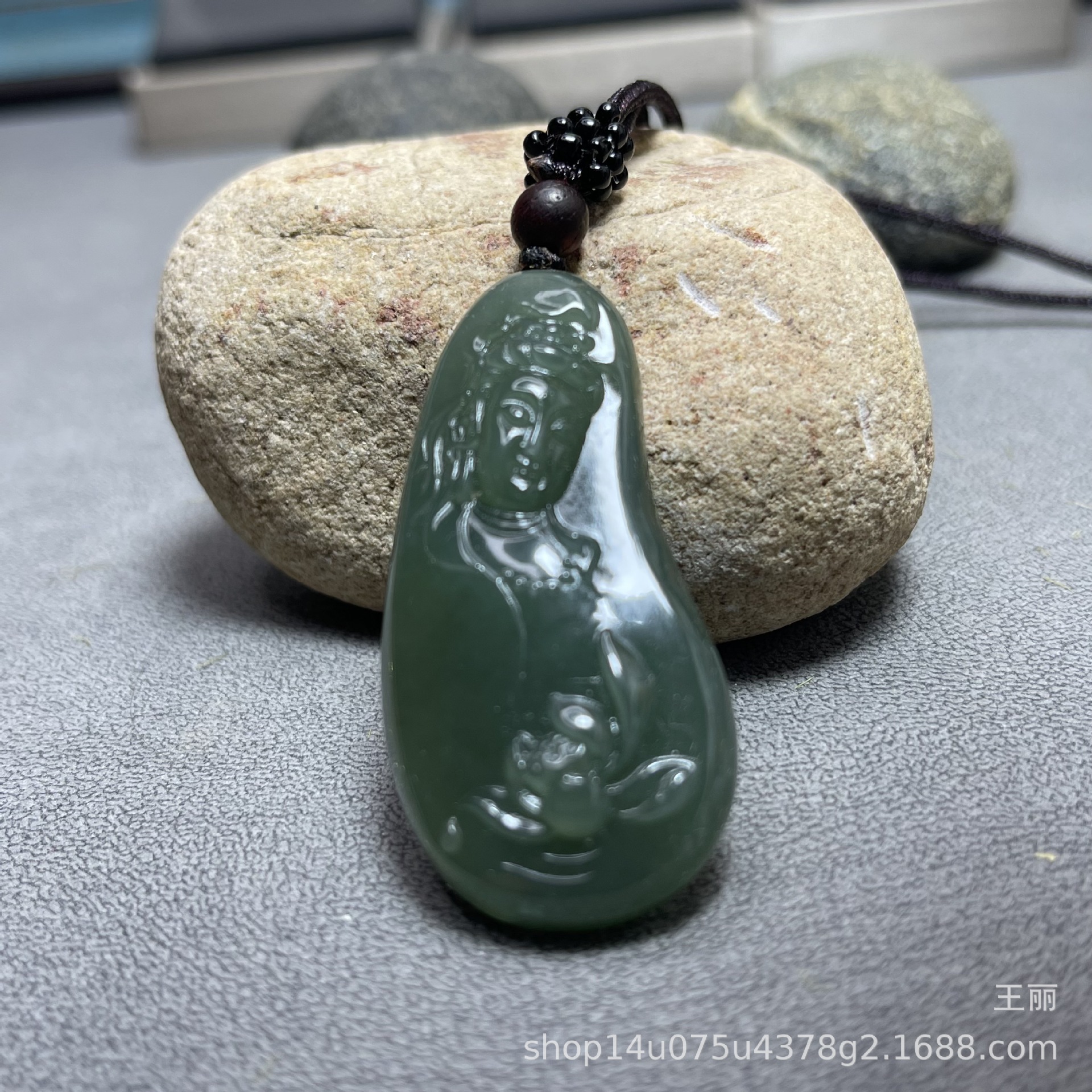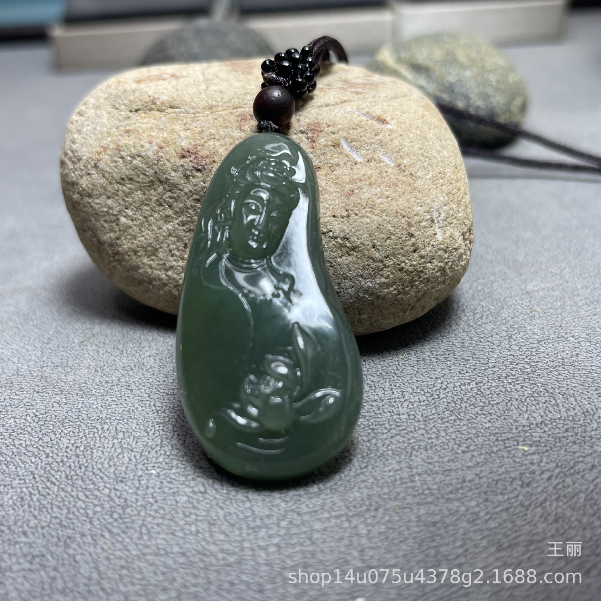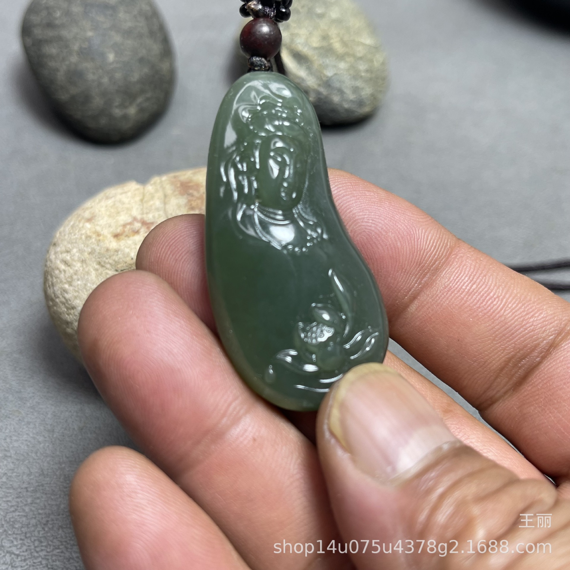和田玉男性観音ペンダントブランド新疆料青玉湖水緑ペンダント守護神種子料金形菩萨
