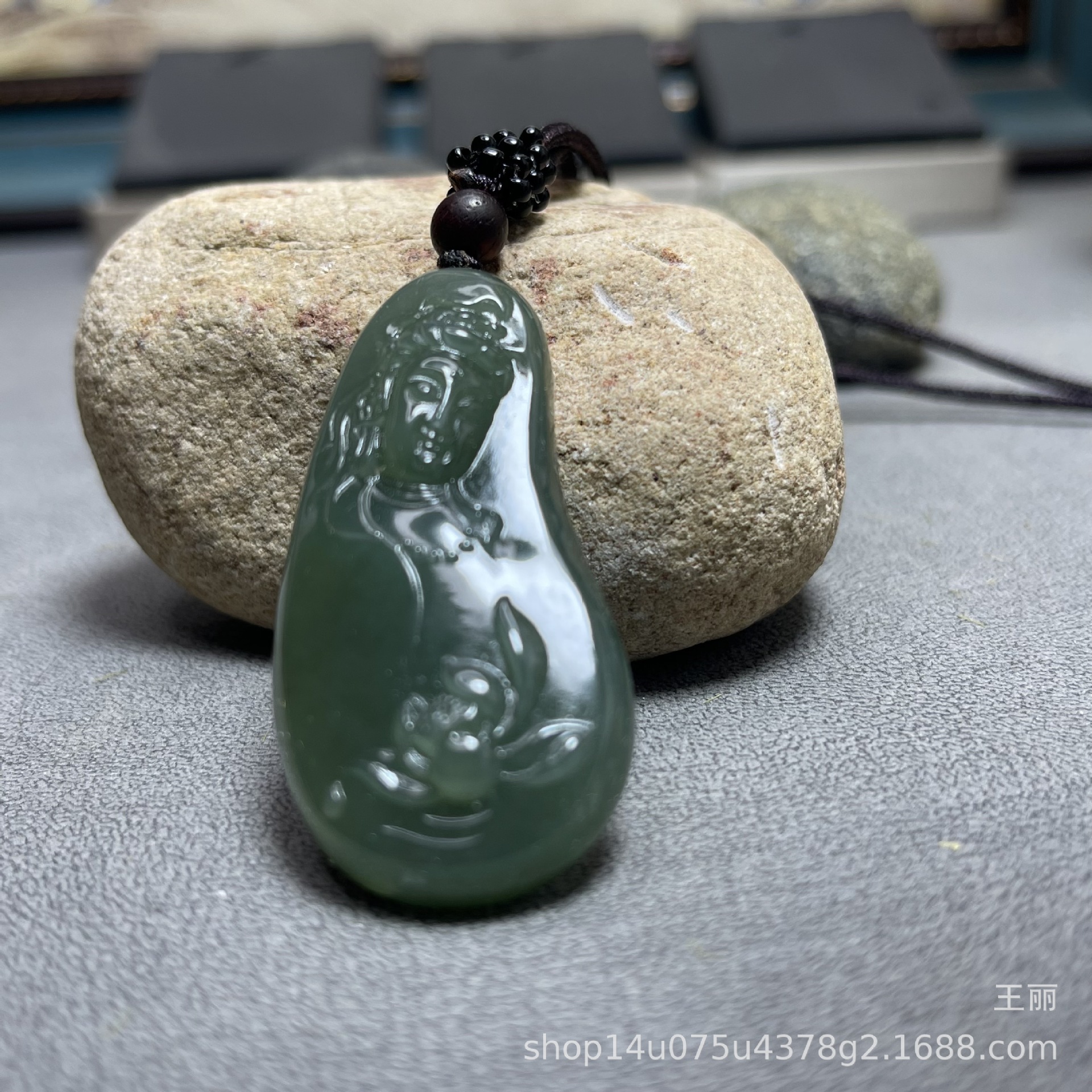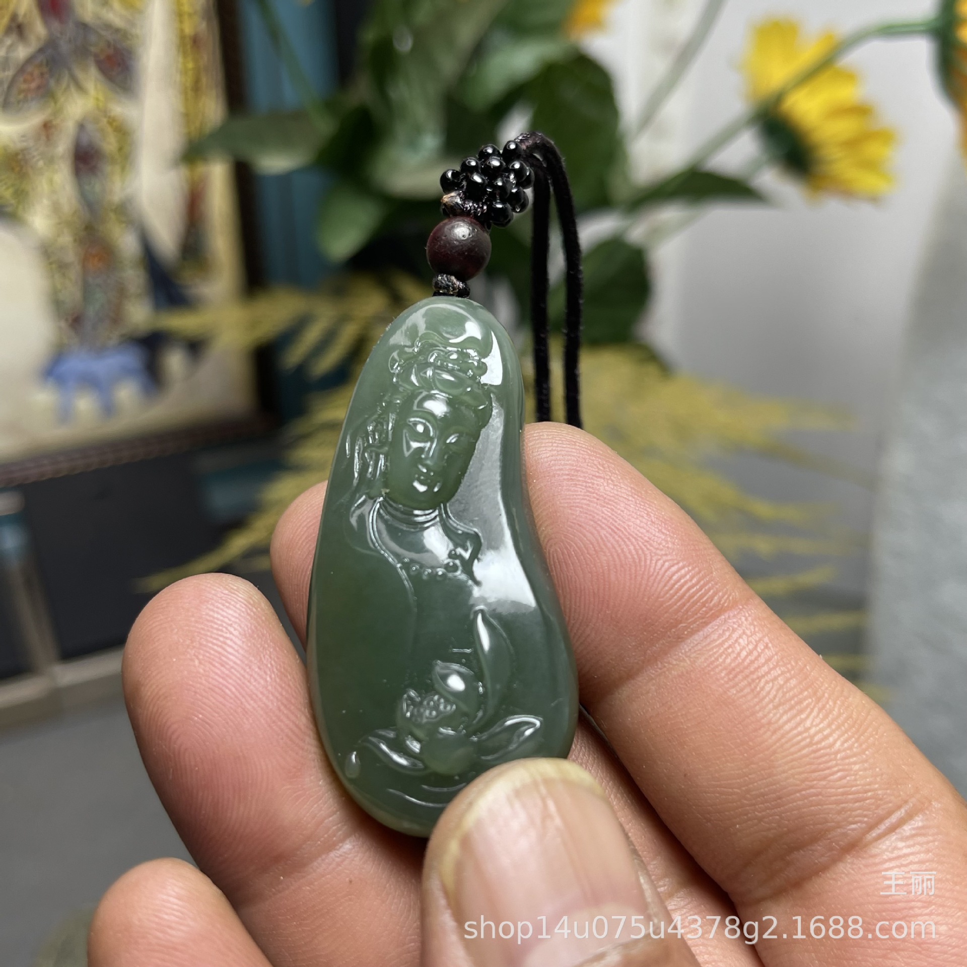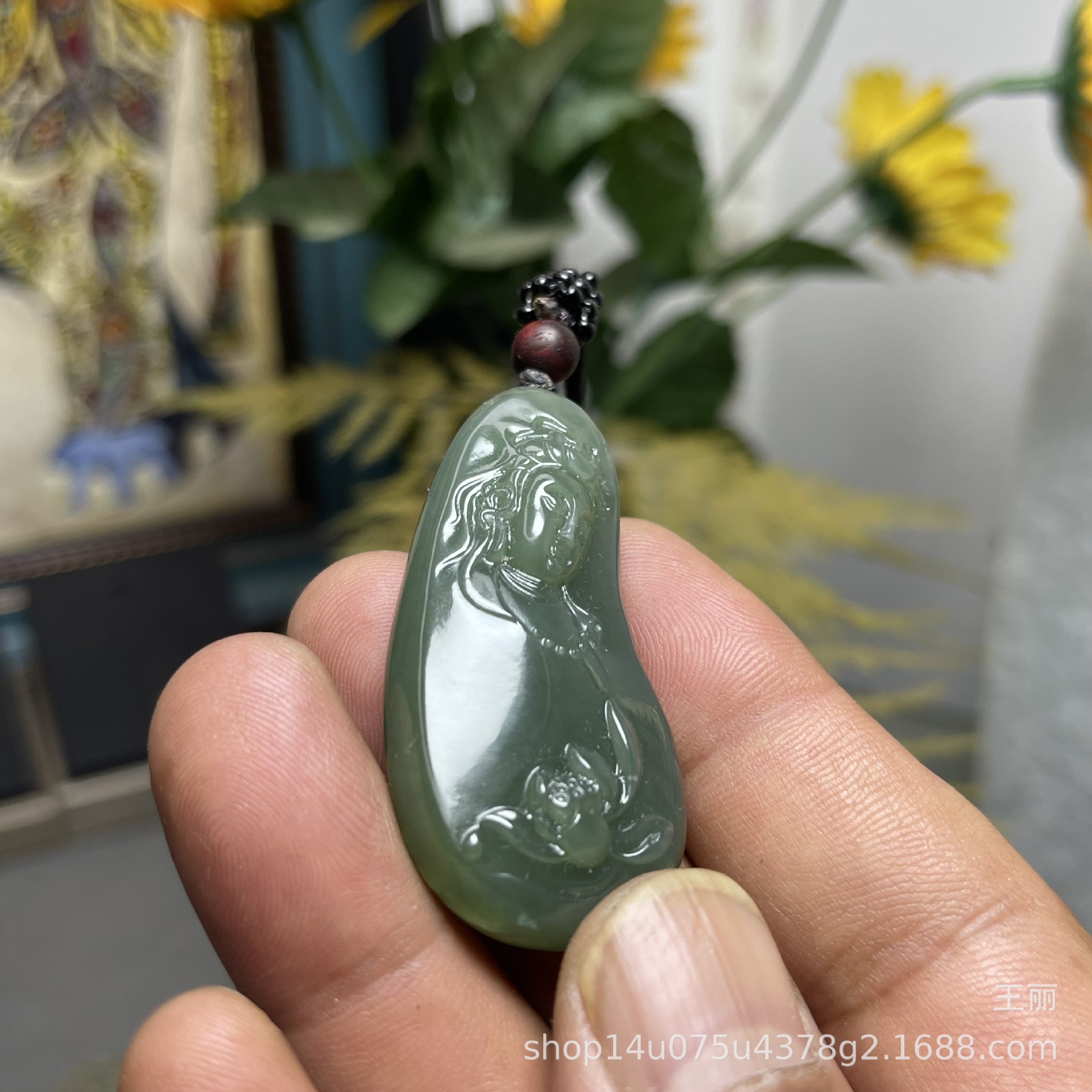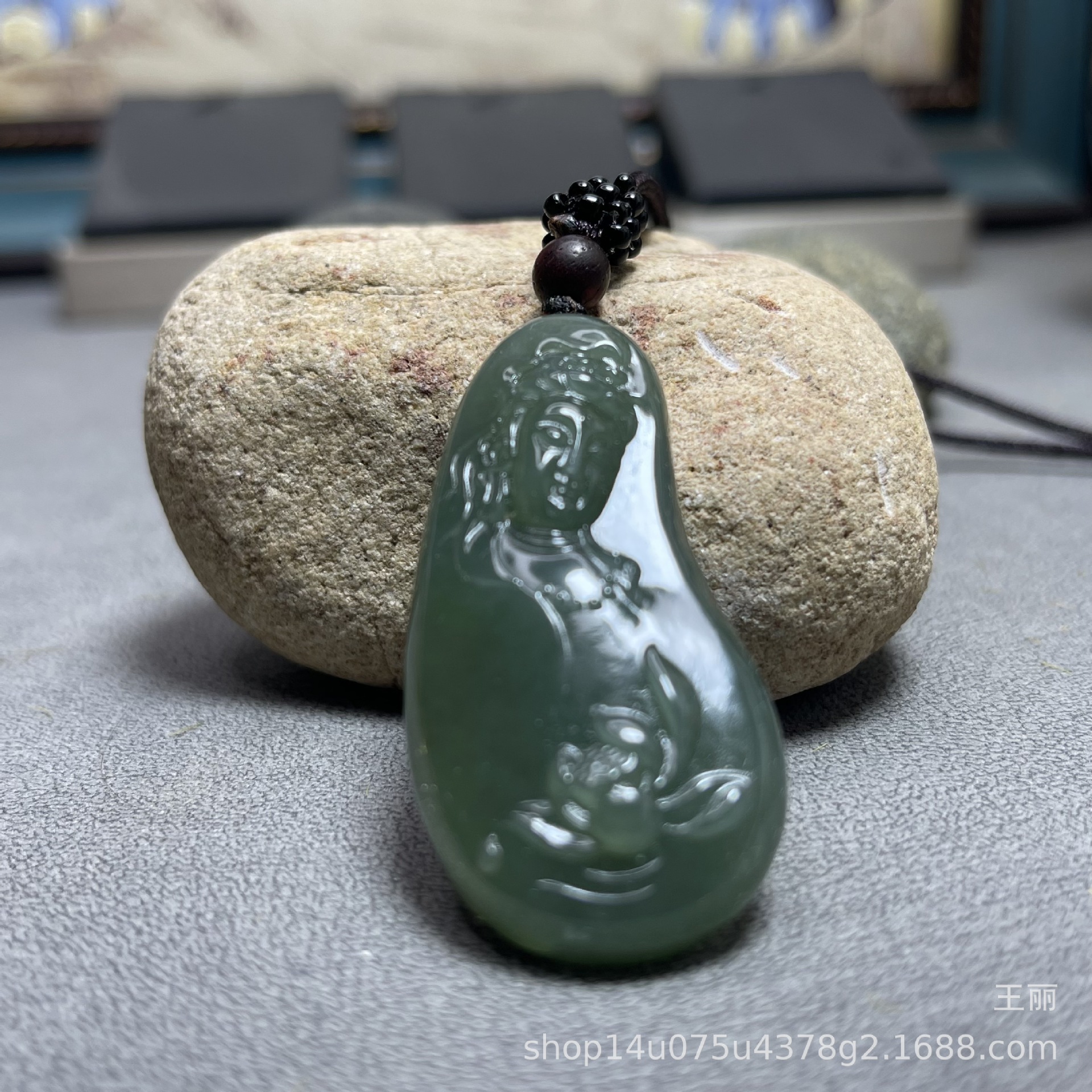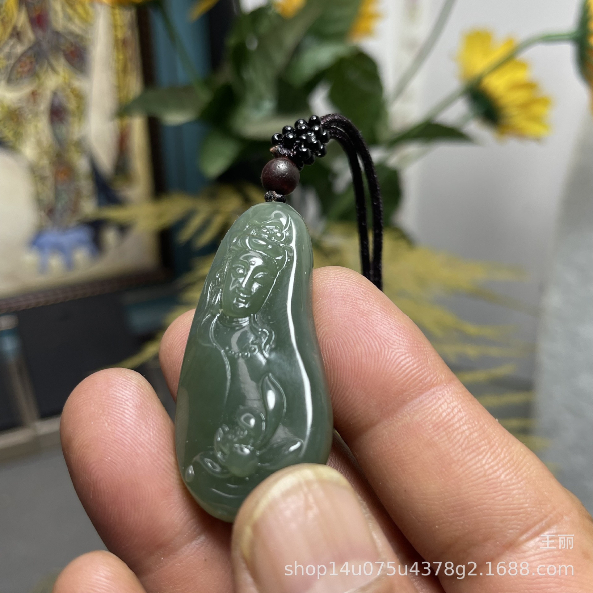 和田玉男性観音ペンダントブランド新疆料青玉湖水緑ペンダント守護神種子料金形菩萨