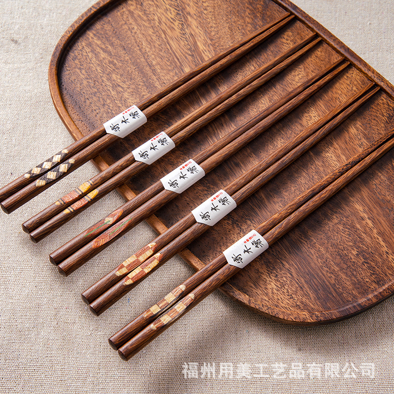日式尖头寄木筷家用高颜值鸡翅木工艺筷一人一筷轻奢实木餐具送礼