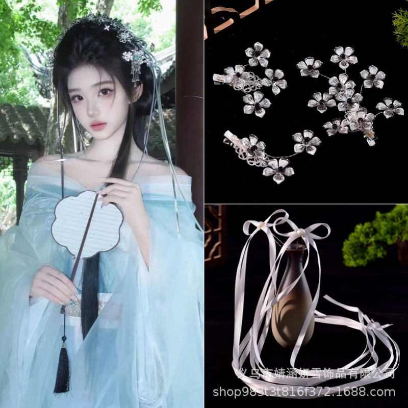 トリノと同じスタイルのヘアアクセサリー、Yuji タッセル、妖精のシルバー、ミャオ族の銀の花のヘアピン、頭飾り、クールな漢服の古代スタイルのアクセサリー