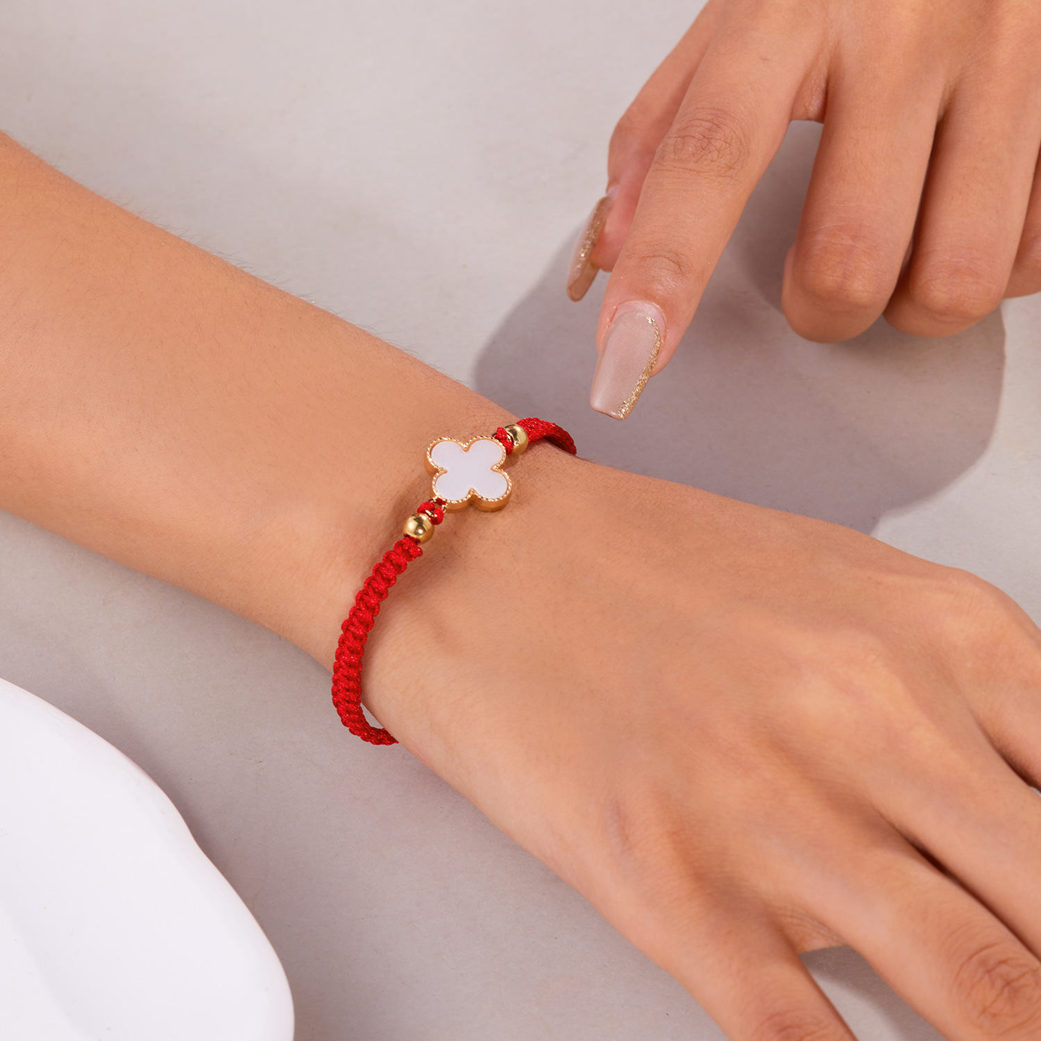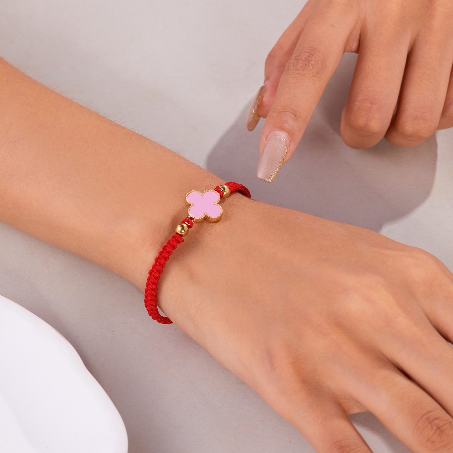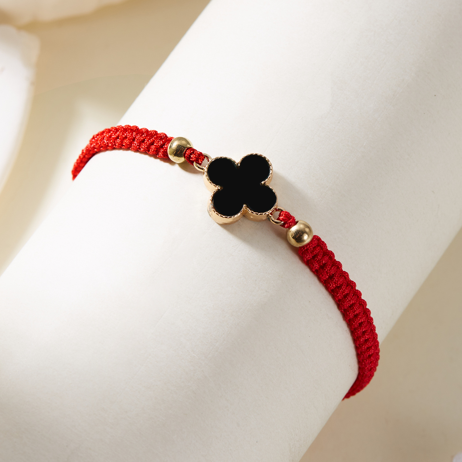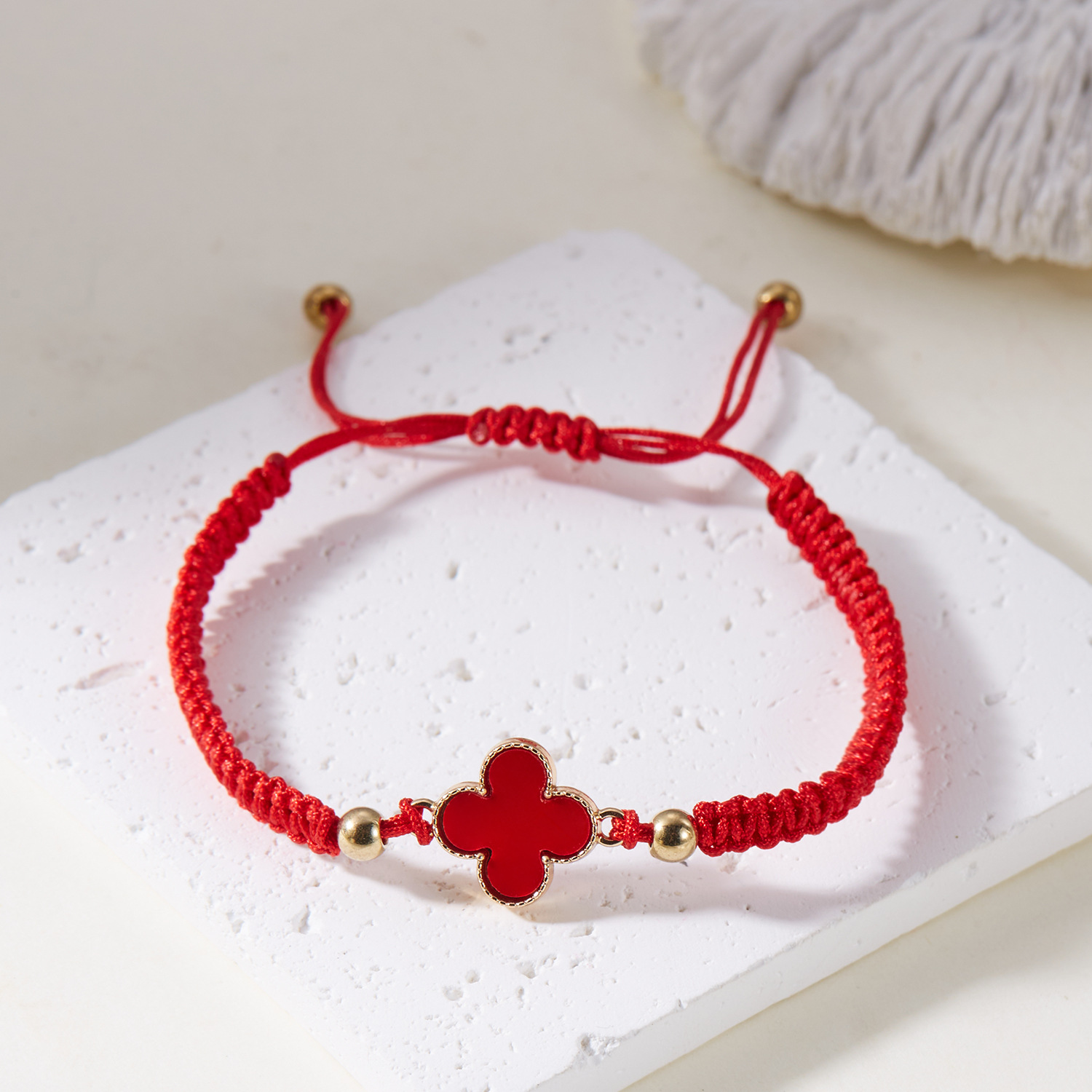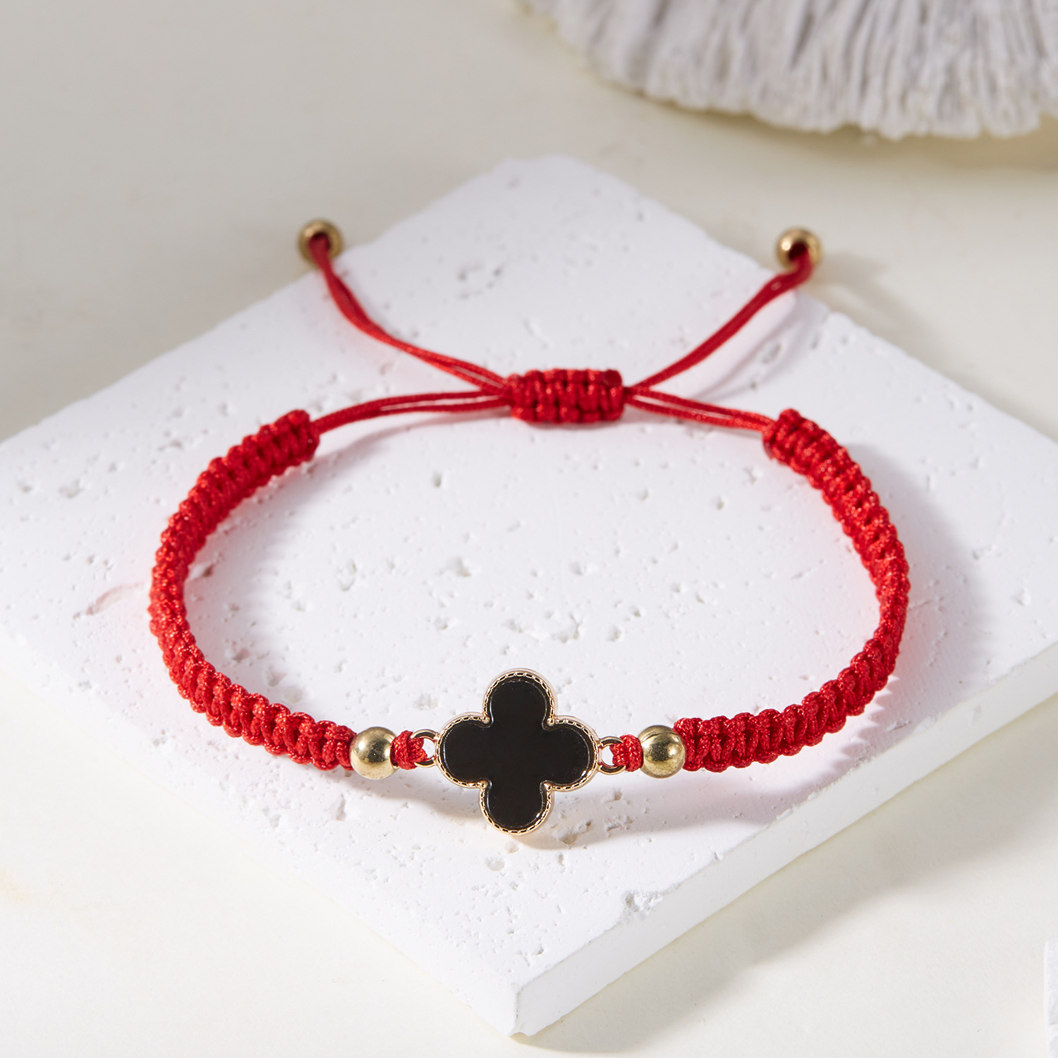 ファッション幸運四葉草編みブレスレット女性ins風小衆百合引き式四葉花手綱