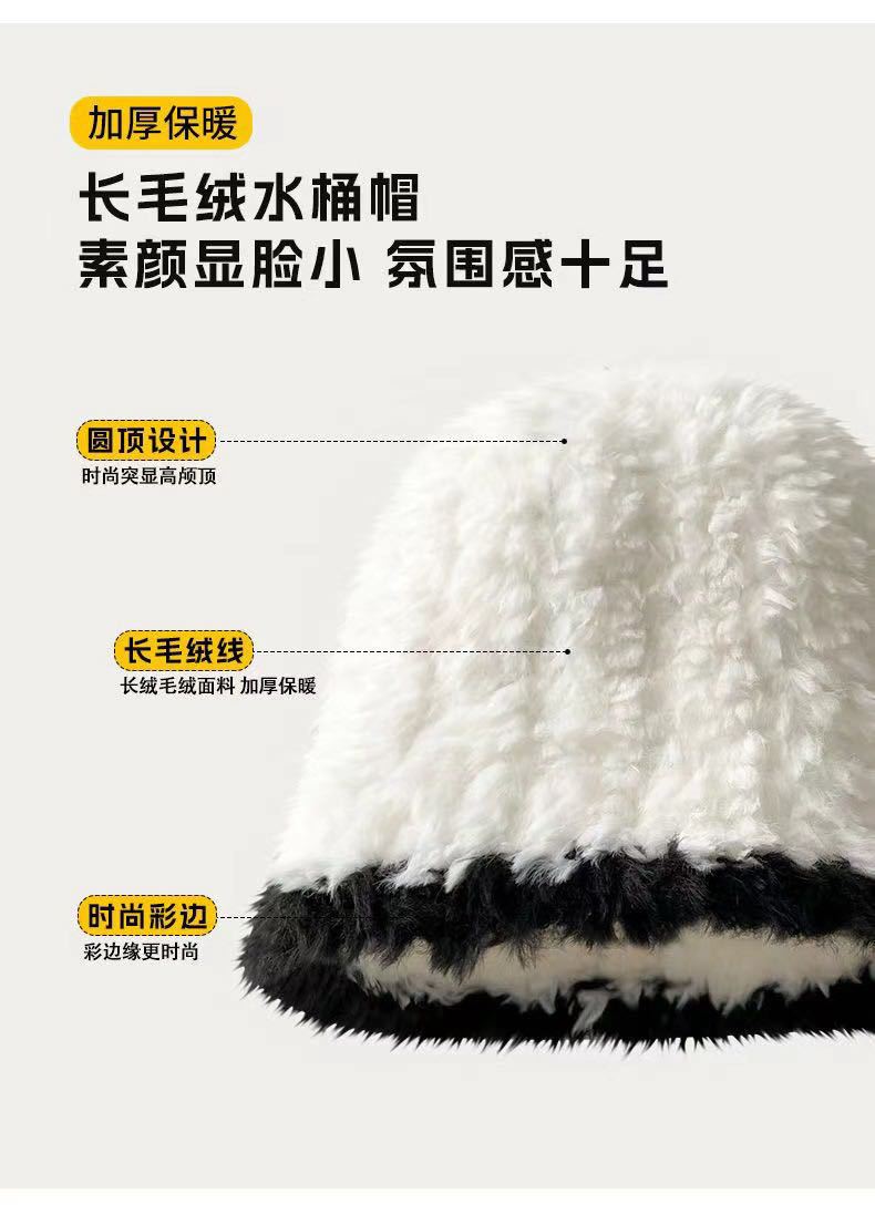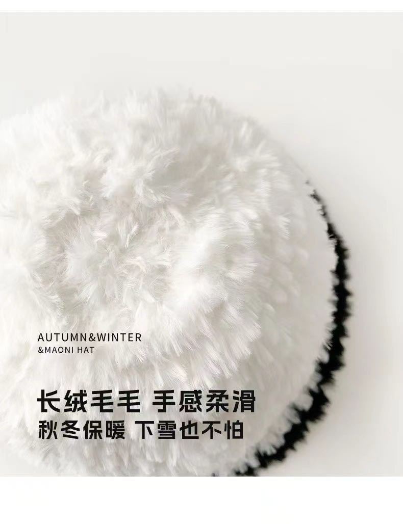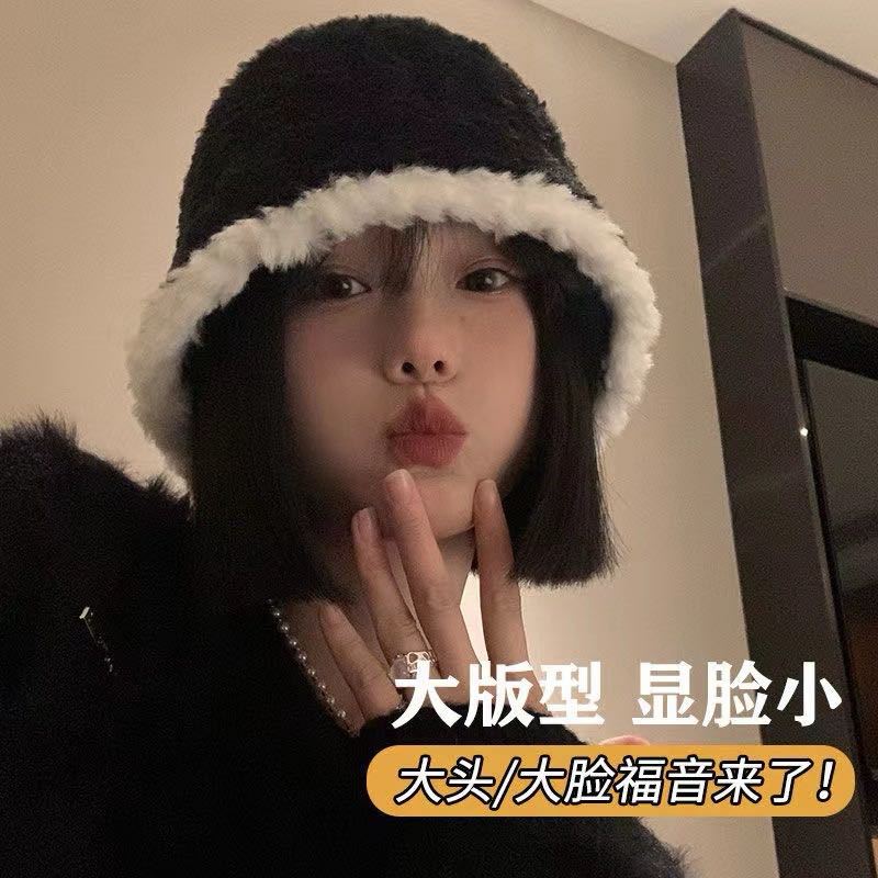 大头围帽子女秋冬白色兔毛渔夫帽2024年爆款毛绒水桶帽显脸小盆帽