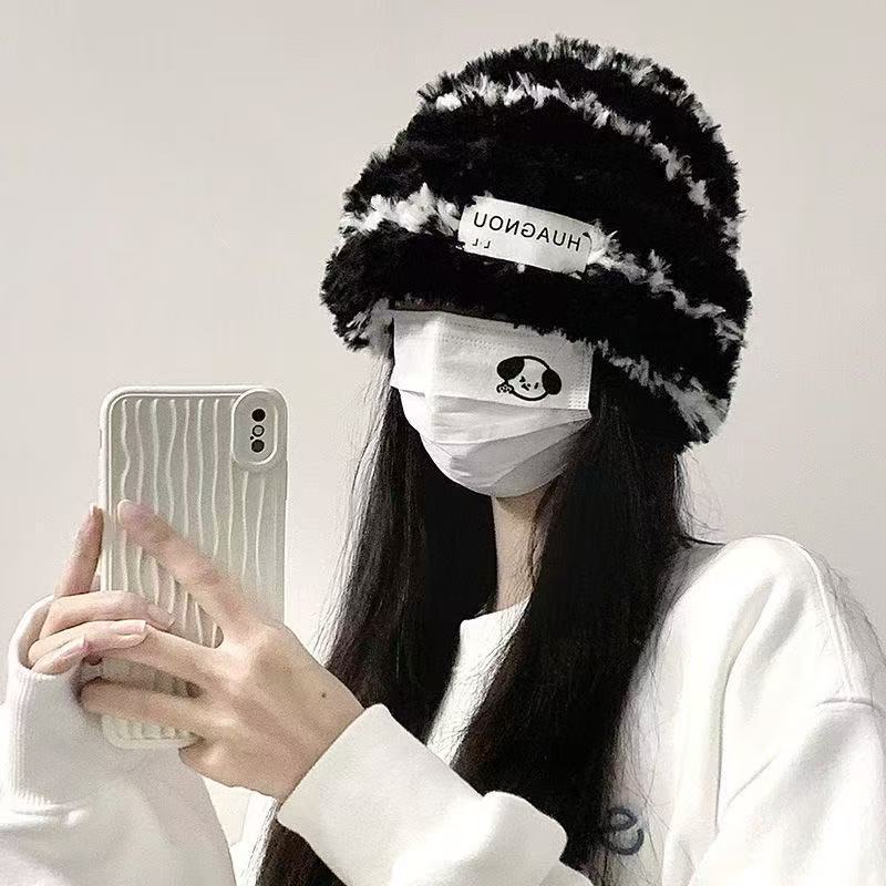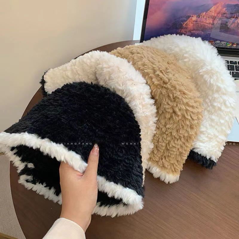 秋冬の女性用新作、ふわふわニットのフィッシャーマンハット。小顔効果、万能、香風、冬用暖かいバケットハット。