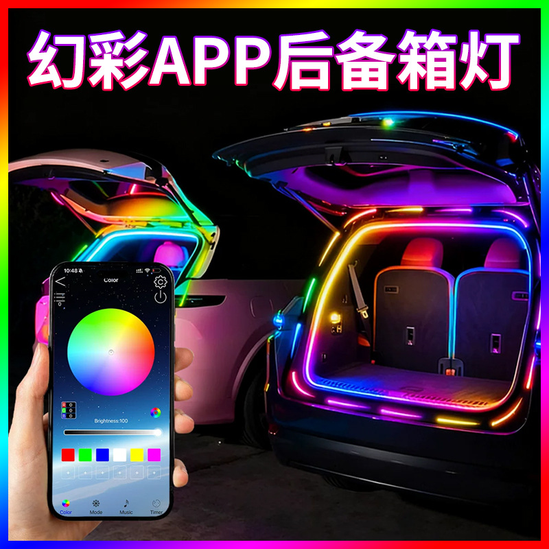 高亮64色幻彩汽车照明后备箱氛围灯车内改装饰免接线感应尾箱灯条