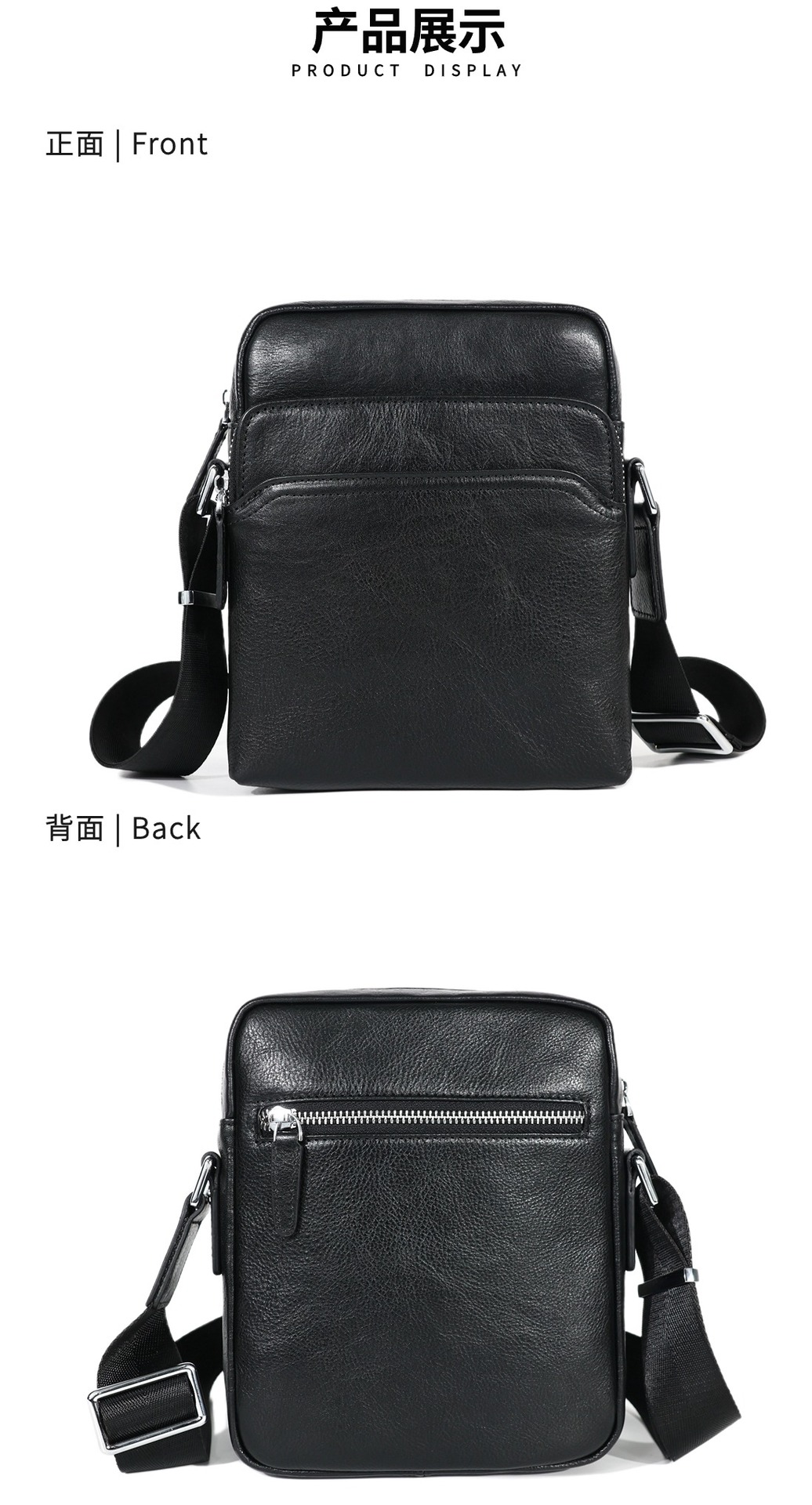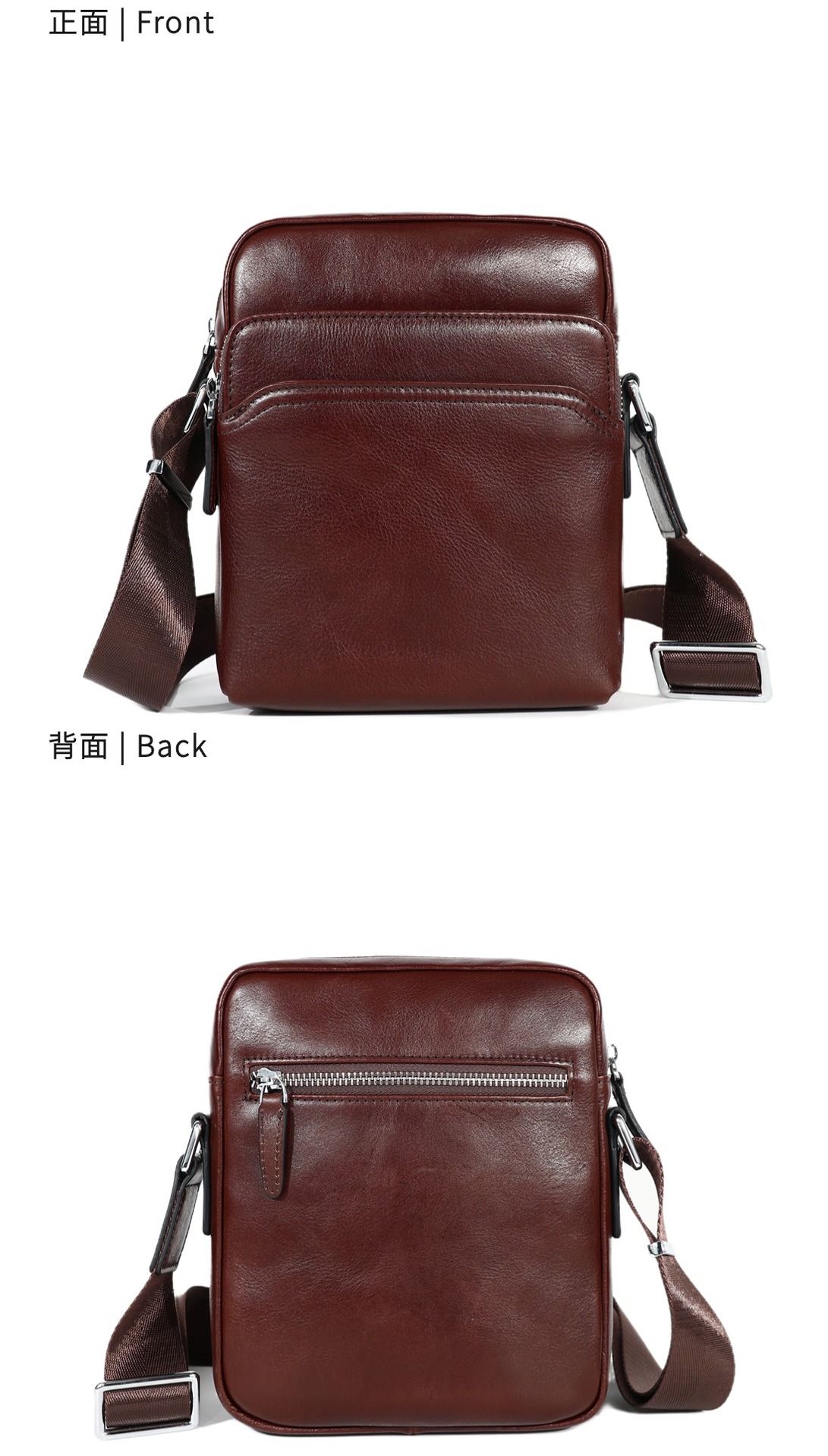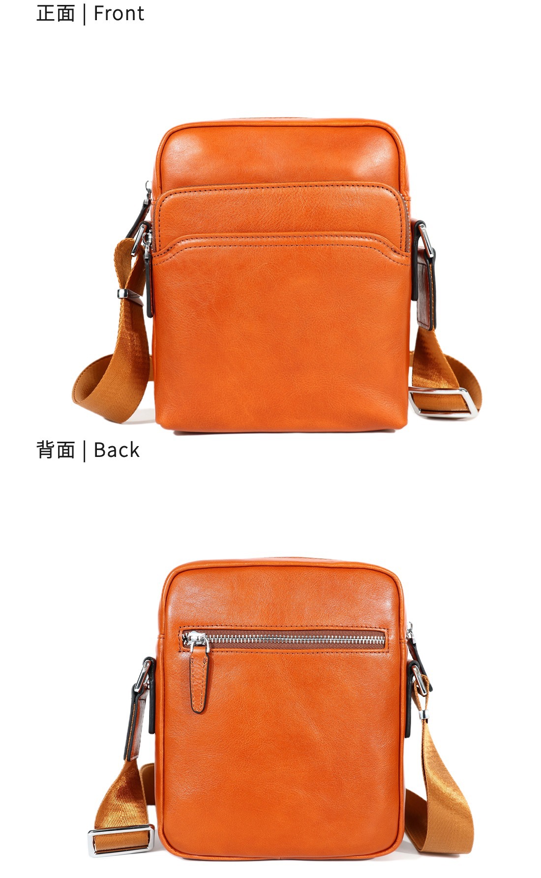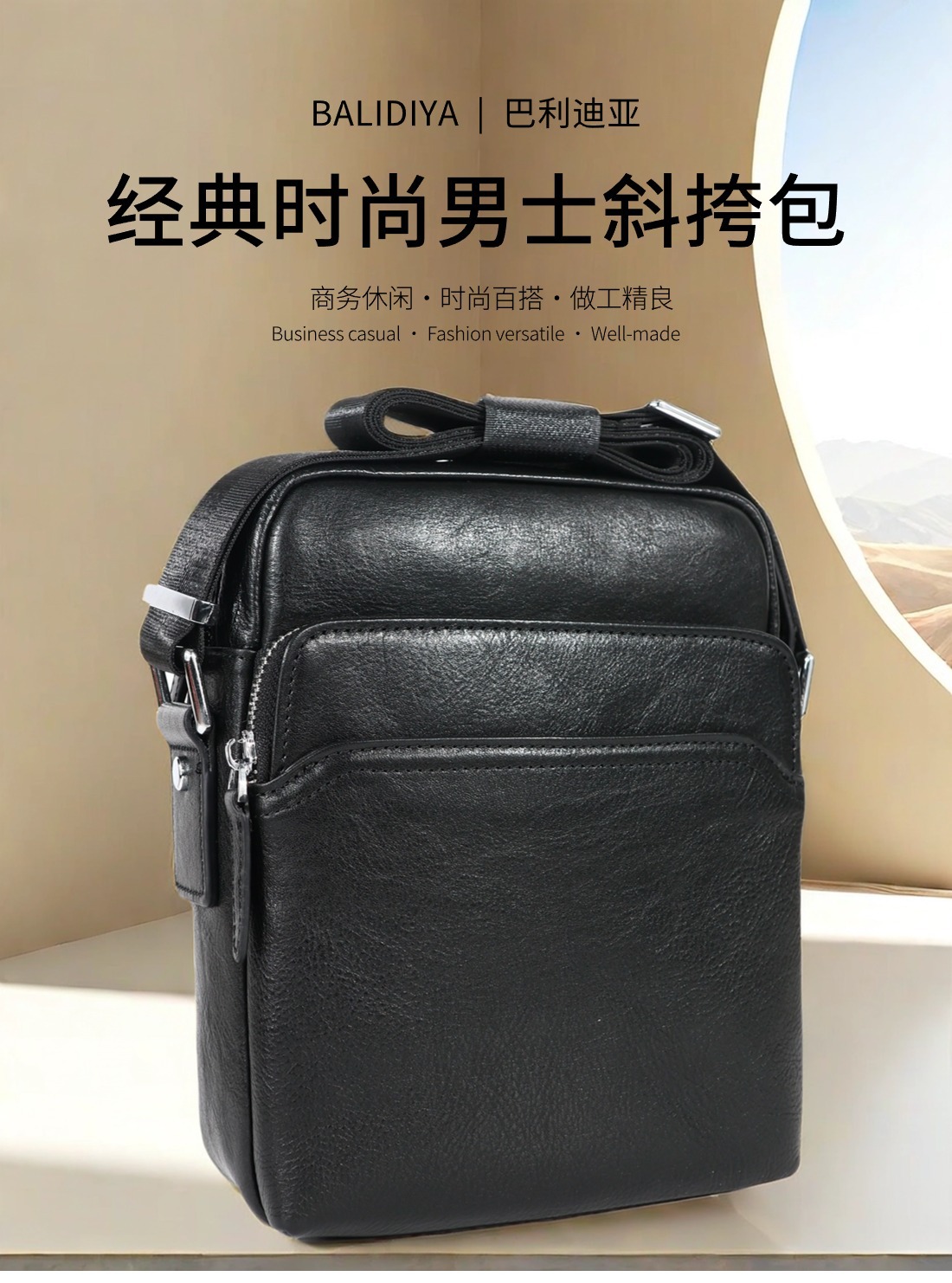 手でなめし革をつかんで男性用バッグを斜めに掛けます。