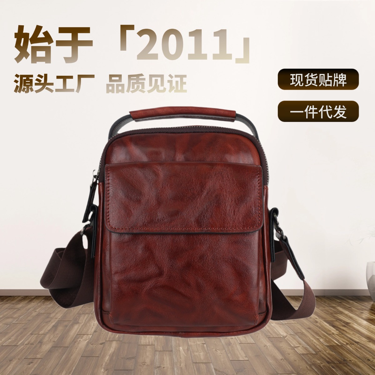 男士斜挎包头层牛皮背包新款大容量休闲商务男包时尚百搭真皮单肩