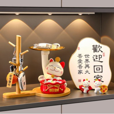 かわいいアイデア招き猫トレイ収納置物リビング玄関キャビネット装飾品ホームアクセサリー引っ越し新居