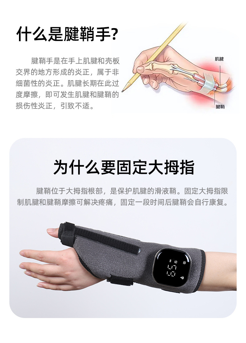 電熱マッサージ腱鞘腕保護腕捻挫熱溶着保護ベルト指回復器手首固定ベルト調節可能