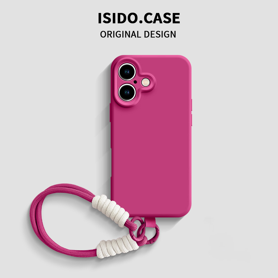 シンプルな純色液体高級感iphone16 promaxストラップリンゴ16pro携帯電話ケース適用15pro