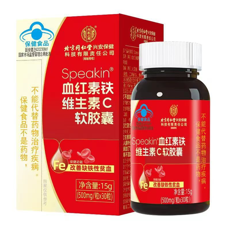 北京同仁堂内廷上用鑫熙血紅素鉄ビタミンCソフトカプセル15g/箱 血紅素ソフトカプセル