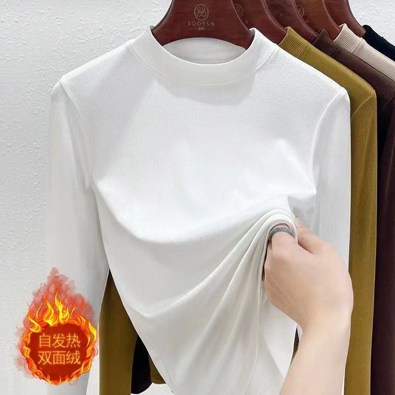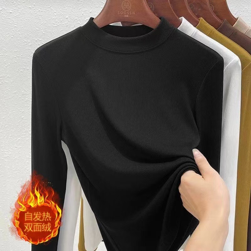 优选双面澳绒堆堆领打底衫女秋冬百搭修身内搭高领长袖打底衫