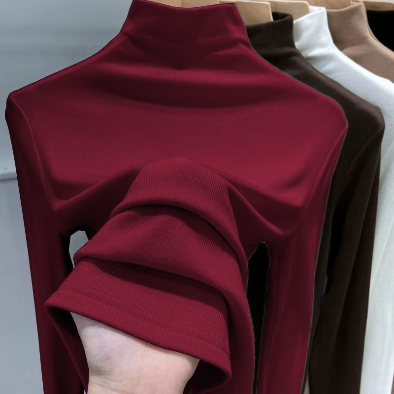 2024年 ハーフタートルネック インナー レディース スリムフィット 長袖トップス 着痩せ効果 エレガント 高伸縮性 万能スタイル
