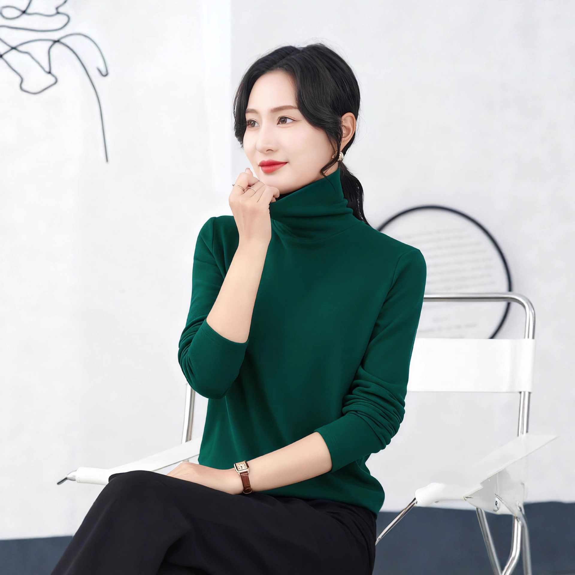 秋冬必备百搭双面澳绒堆堆领打底衫女修身显瘦内搭高领长袖打底衫