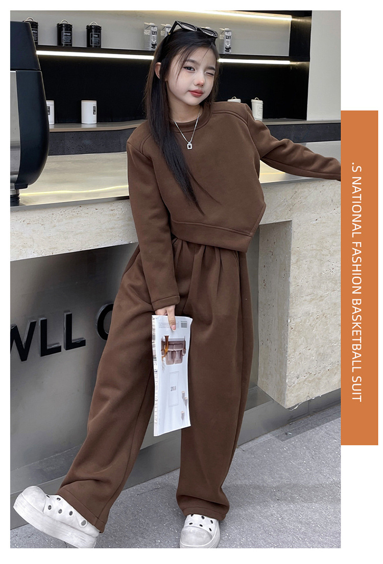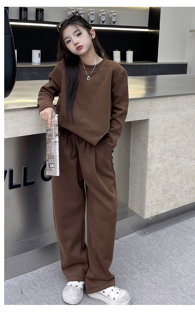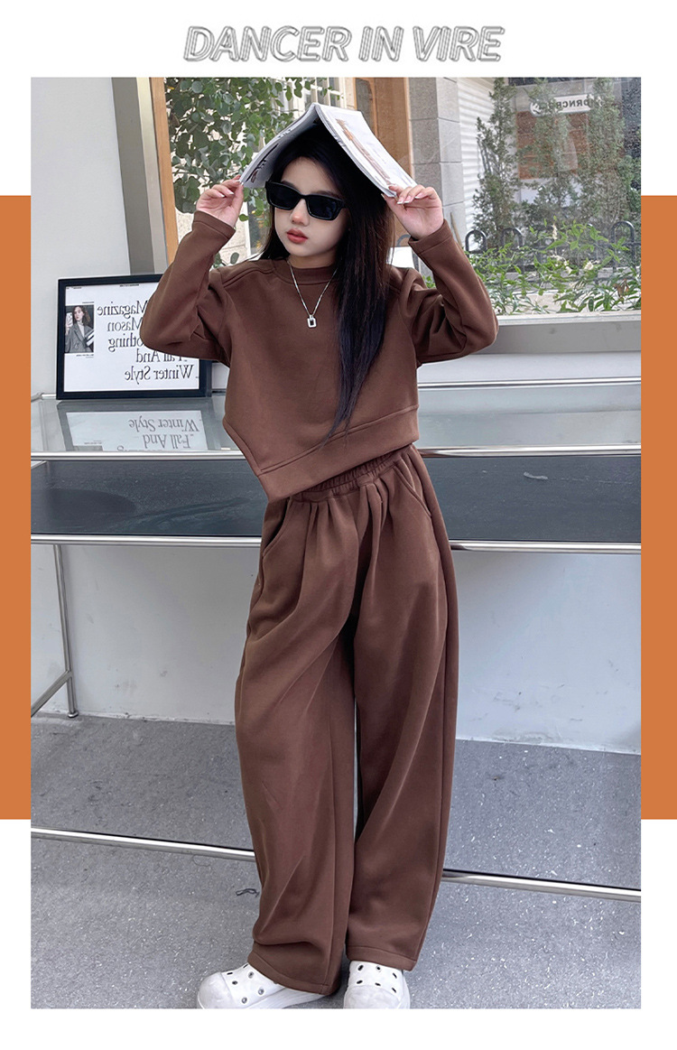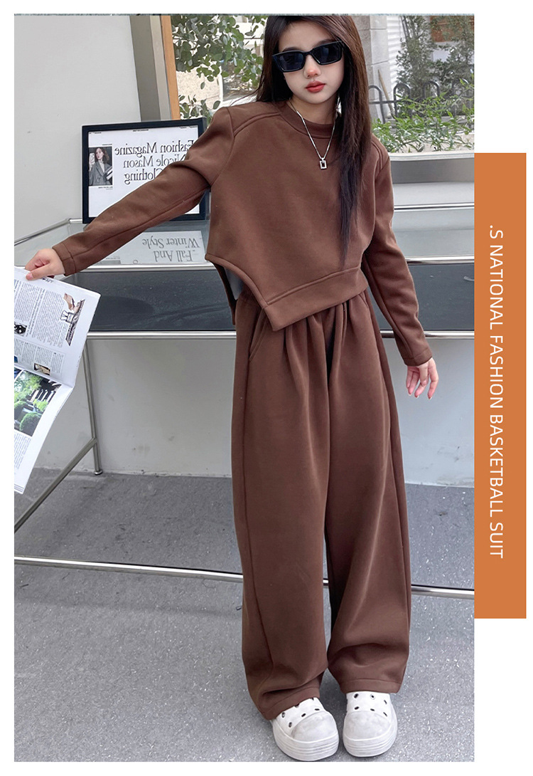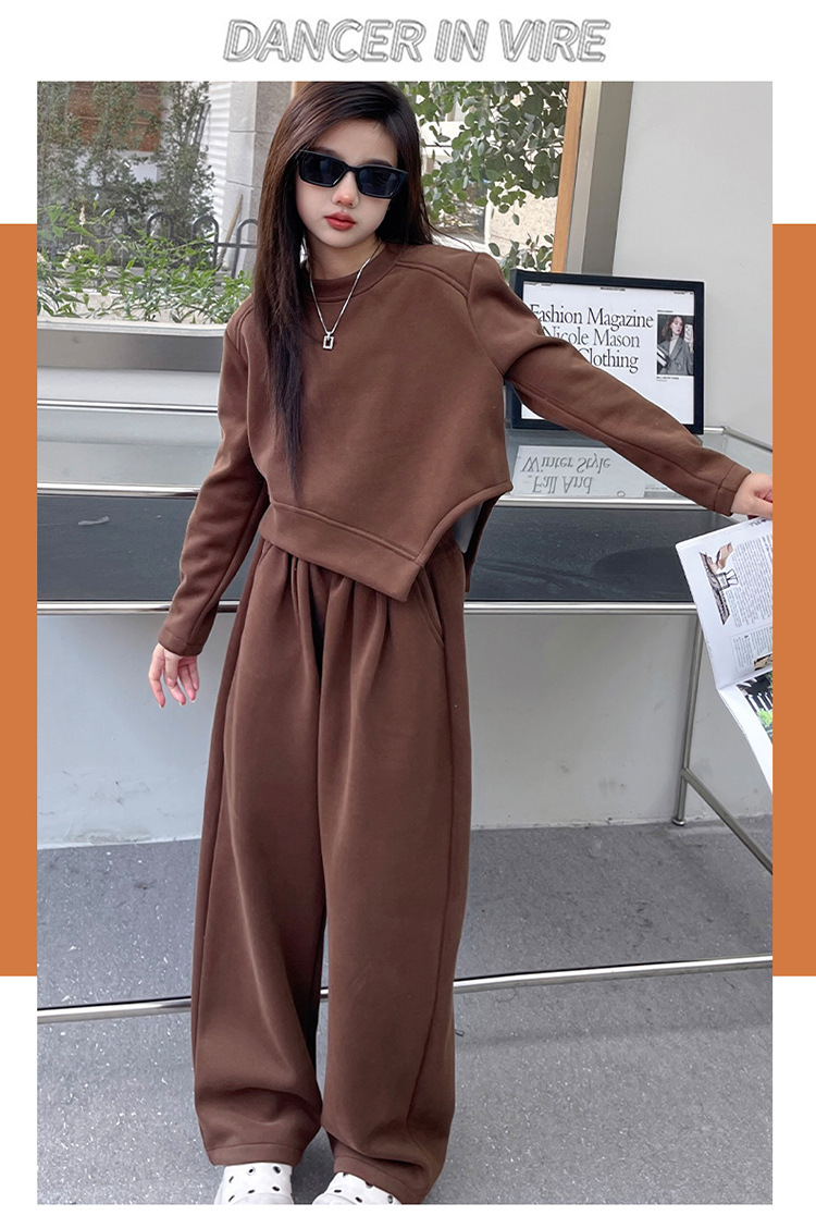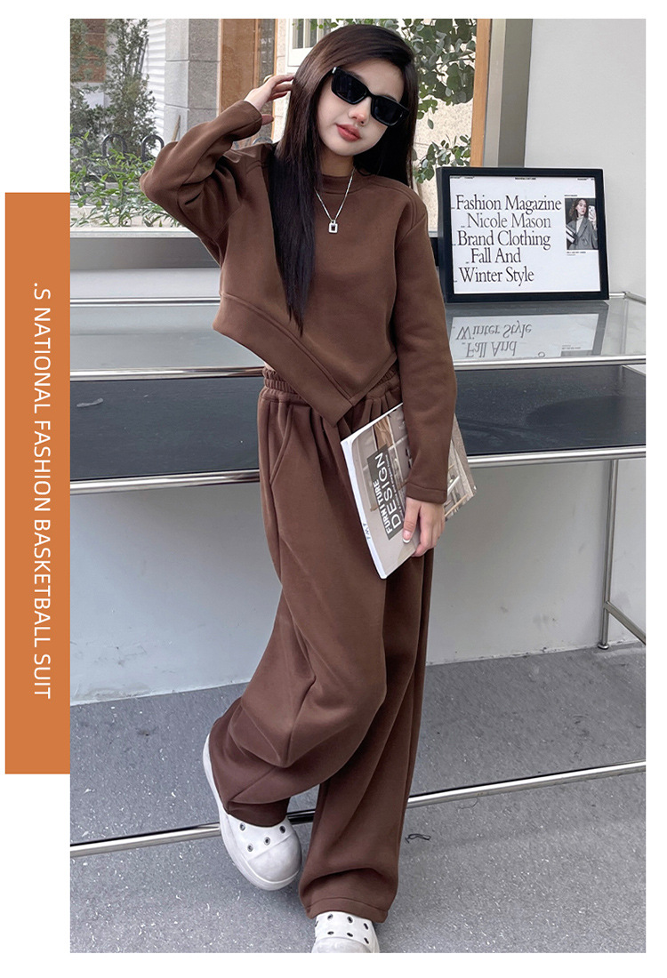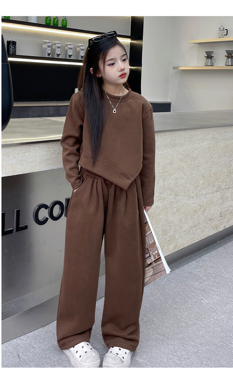 Qin B-22-Qimumu-バイアスカットブラウンスウェットシャツセット