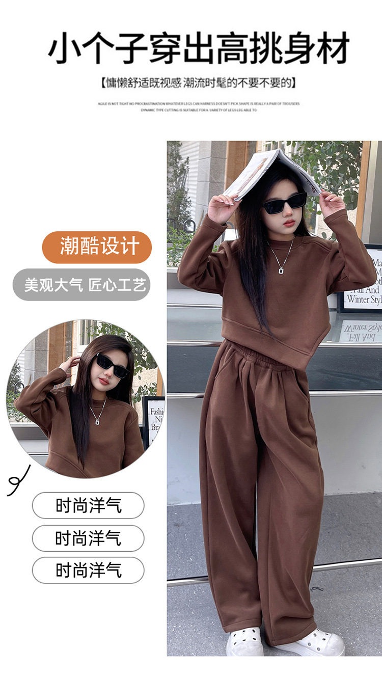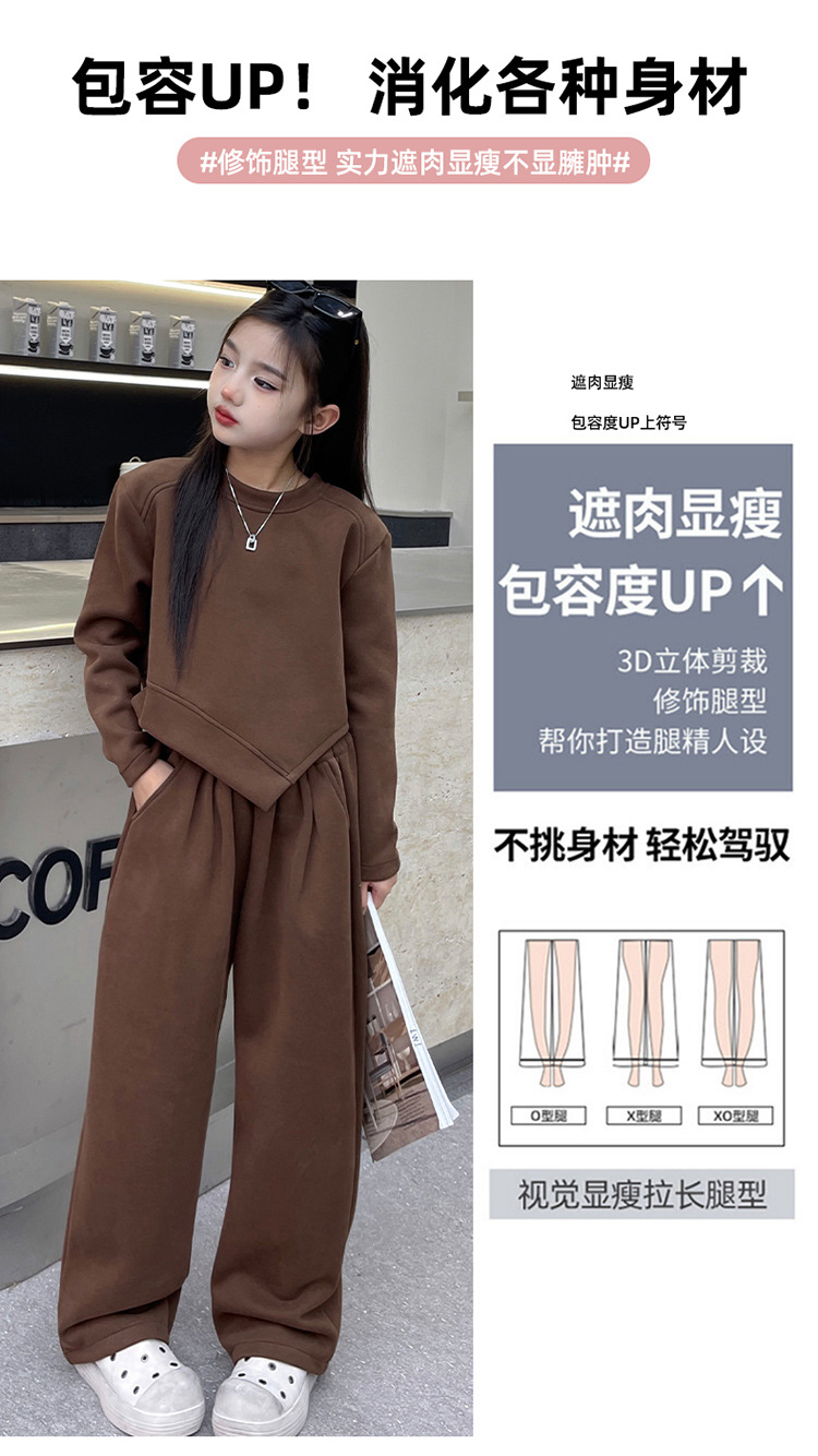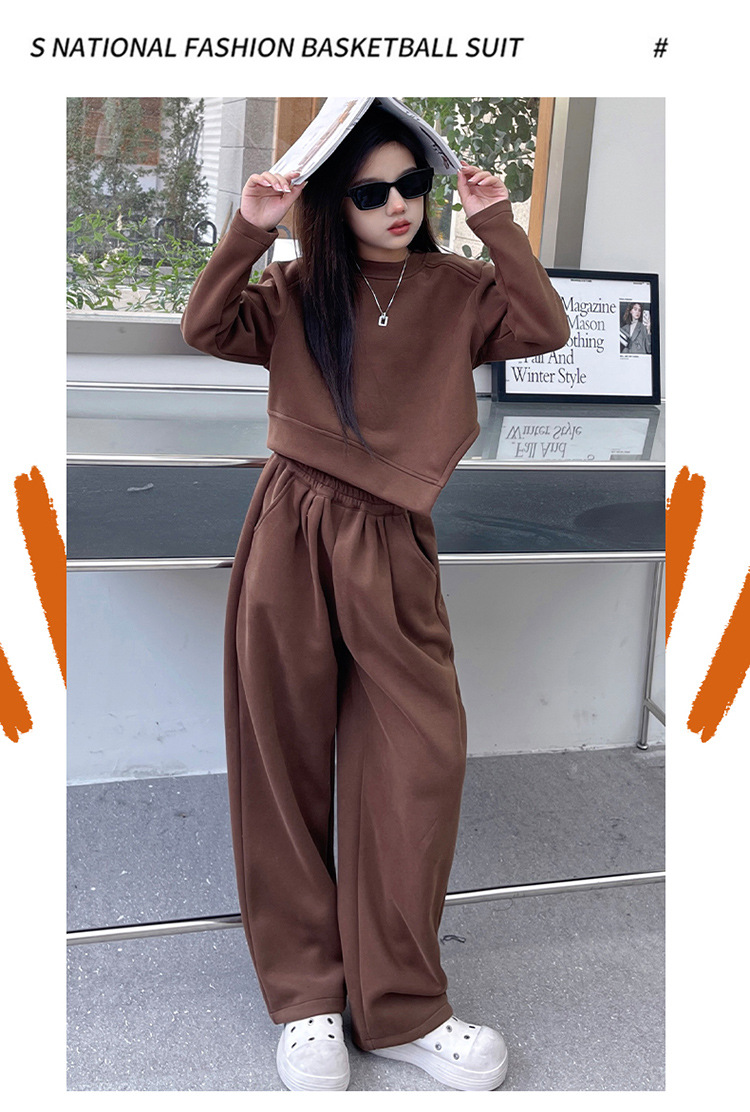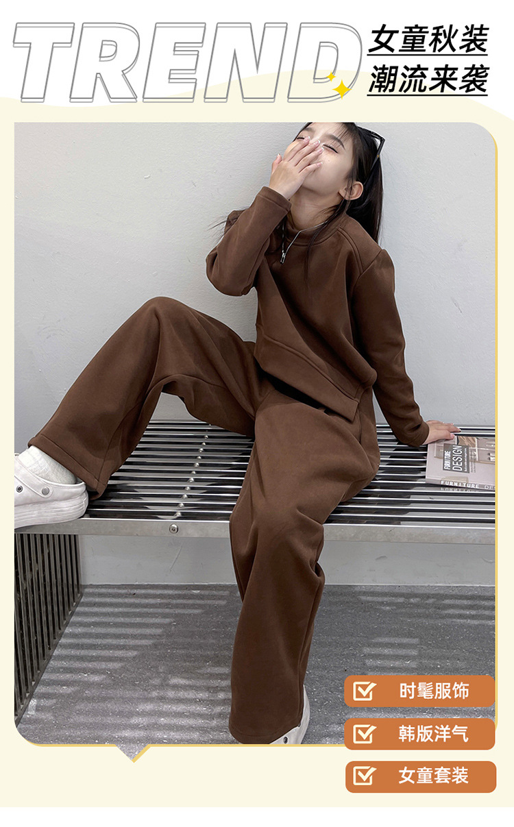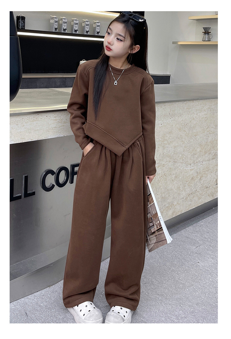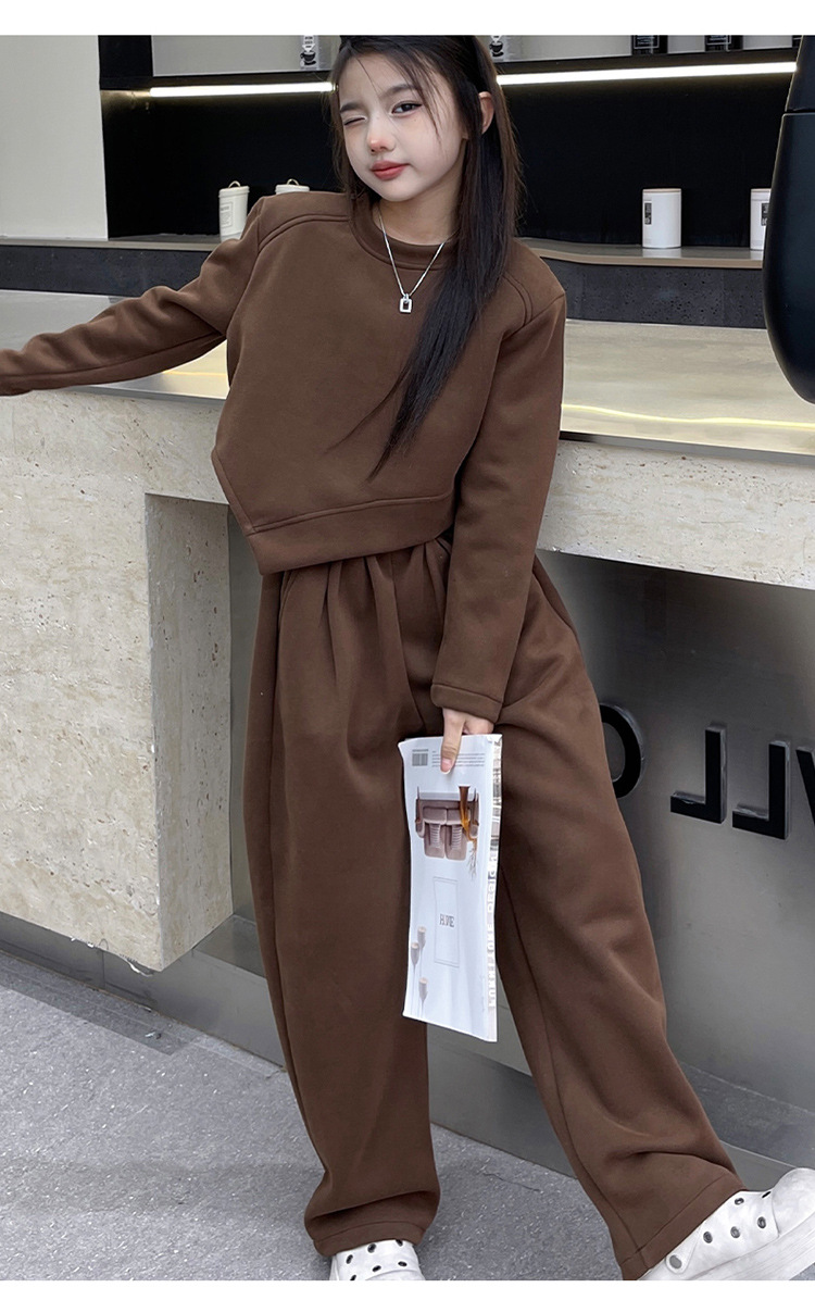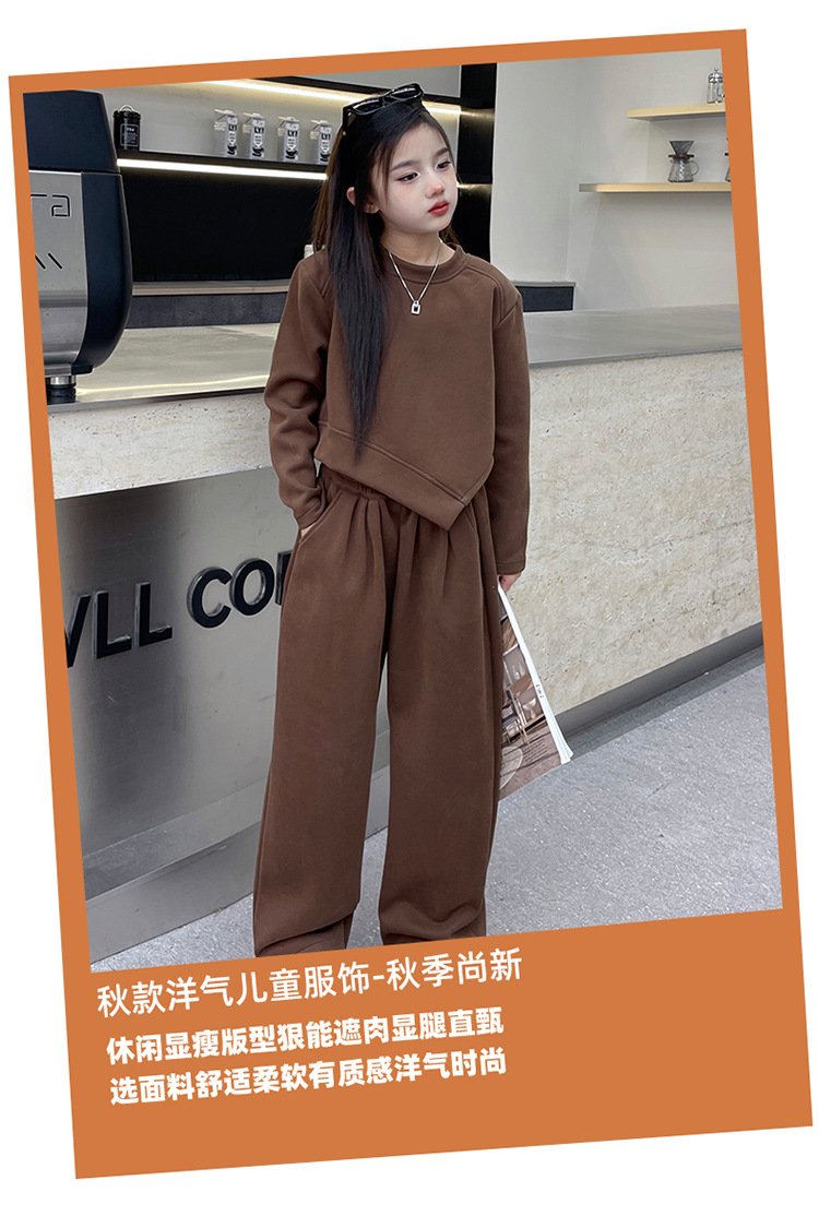 Qin B-22-Qimumu-バイアスカットブラウンスウェットシャツセット