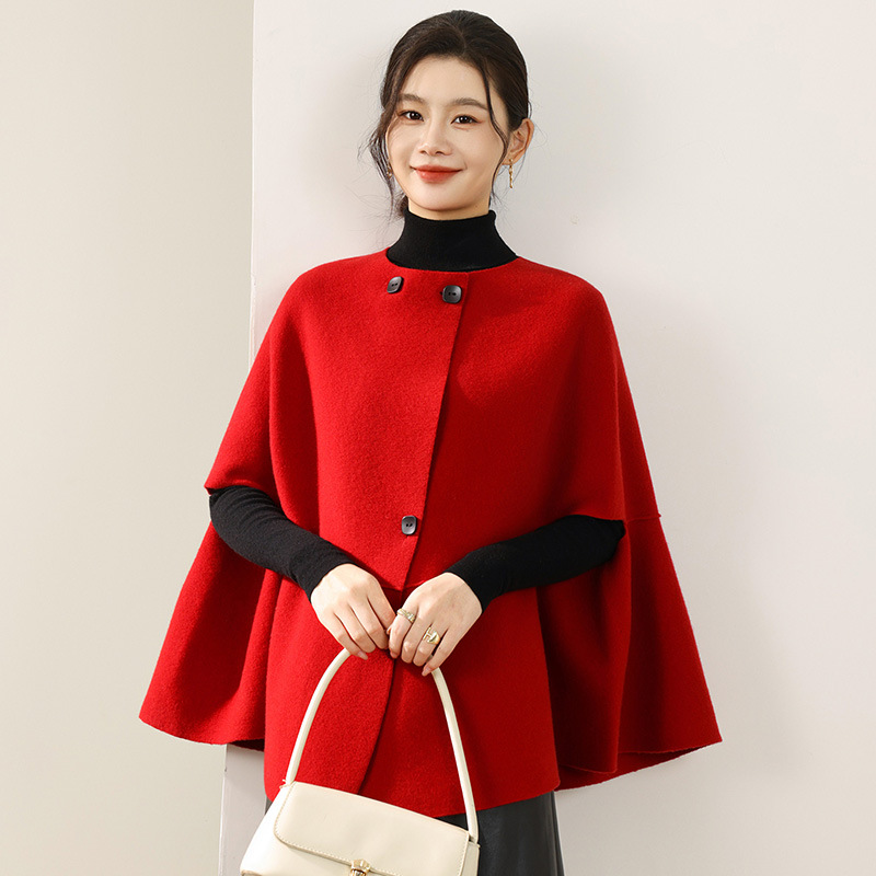 2025秋冬新款女装羊毛斗篷披肩女赫本风时尚圆领百搭加厚毛衣外套