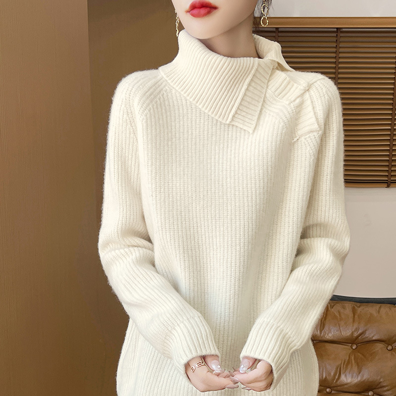 新中国式のサイド折り襟の純色のウールのセーターの女性の秋冬の洋風のゆったりとした皿はニットのセーターのウールの底のシャツを掛けます。