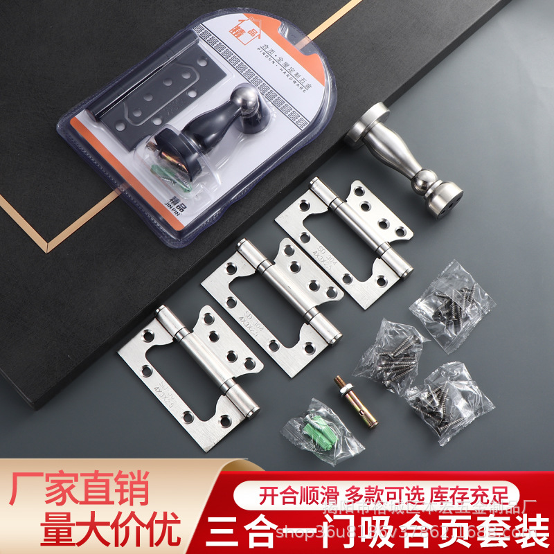 3-in-1 レターハンガー式ドアストッパーセット、溝切り不要、4inch 5inchステンレス製3点セット、モダンでシンプルなヒンジ