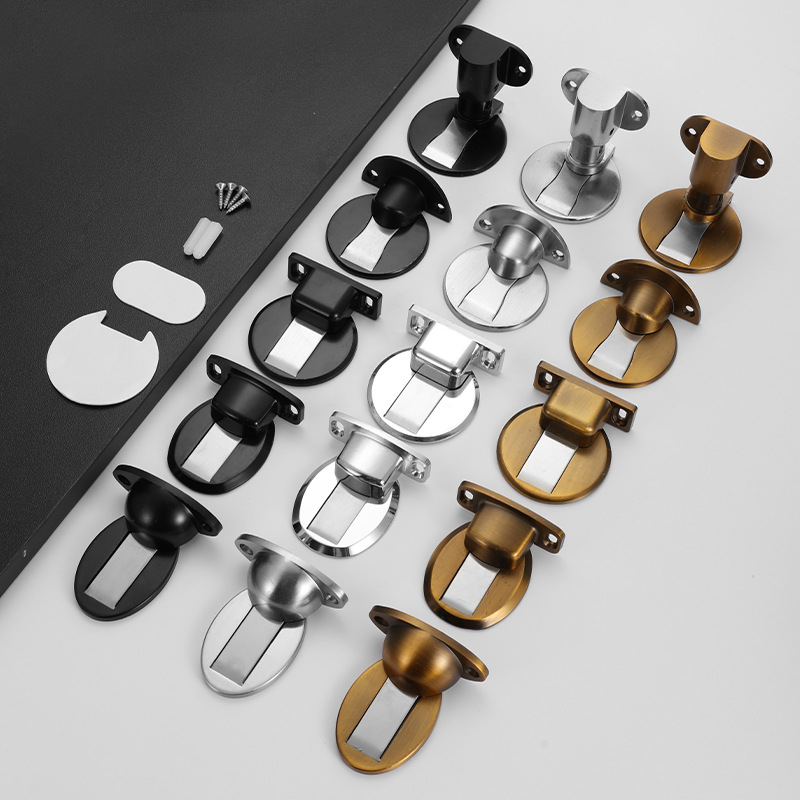 穴あけ不要の亜鉛合金製ドアストッパー、厚型ドアストッパー、室内木製ドア用、衝突防止、静音、強力磁石