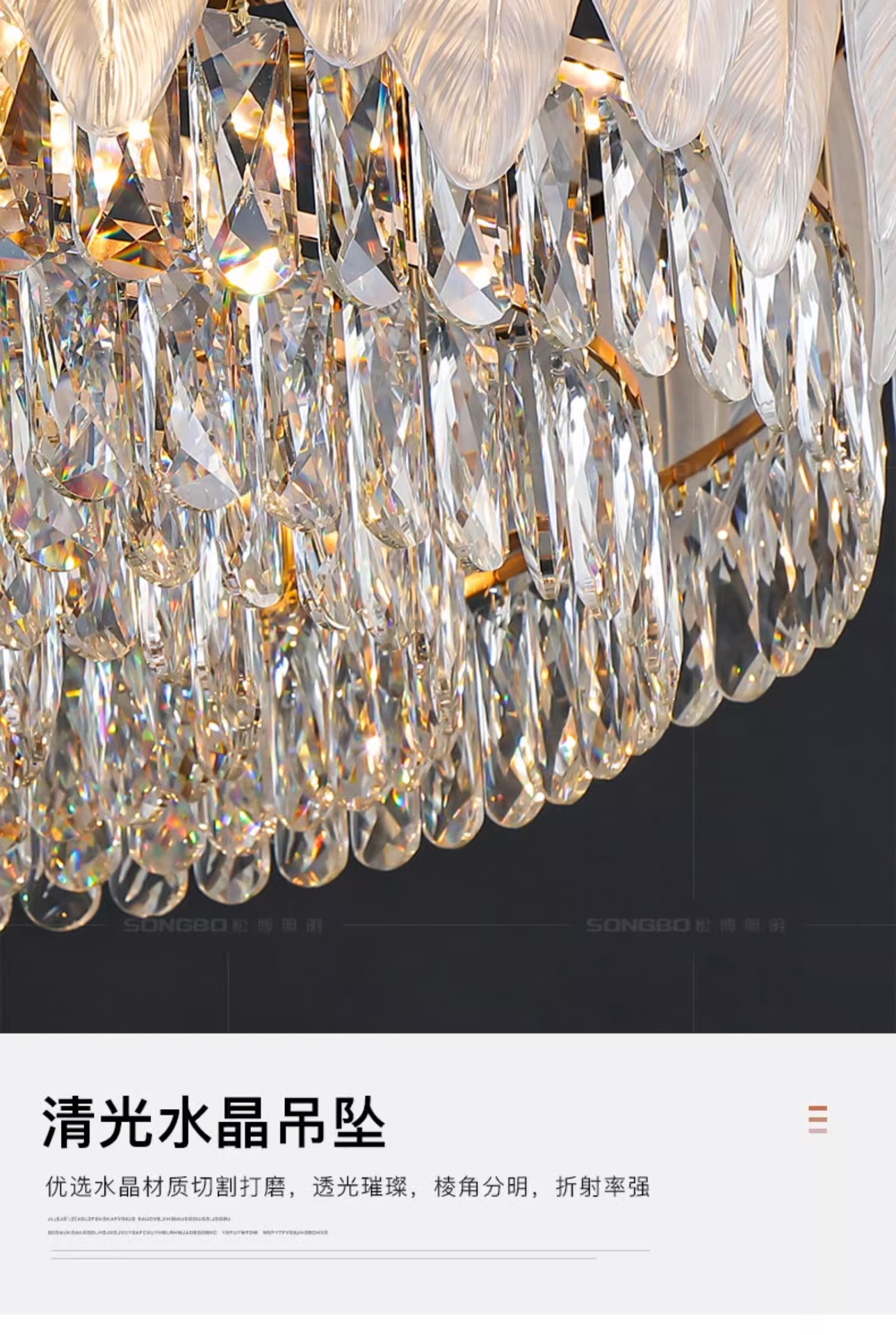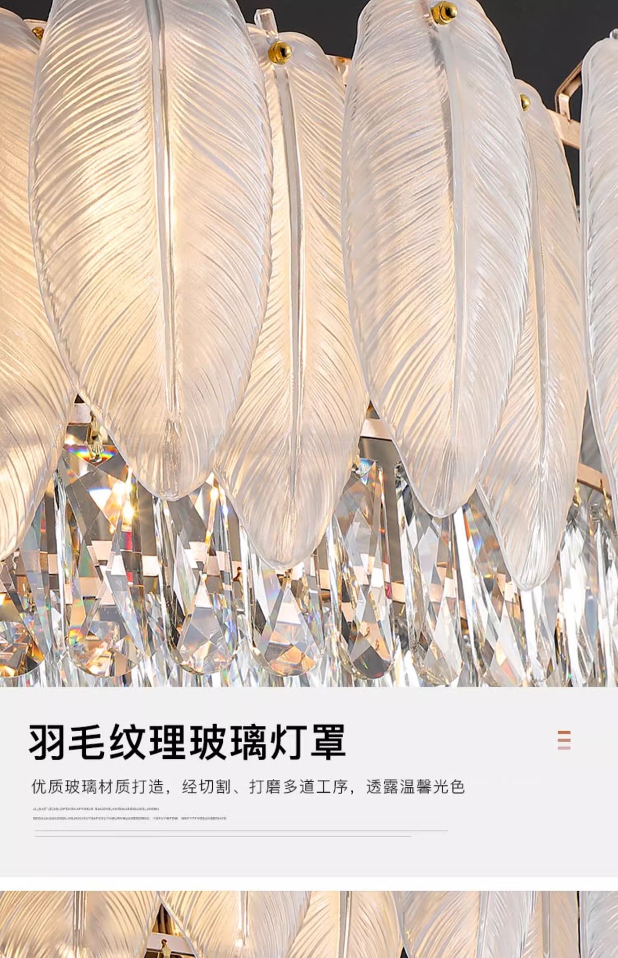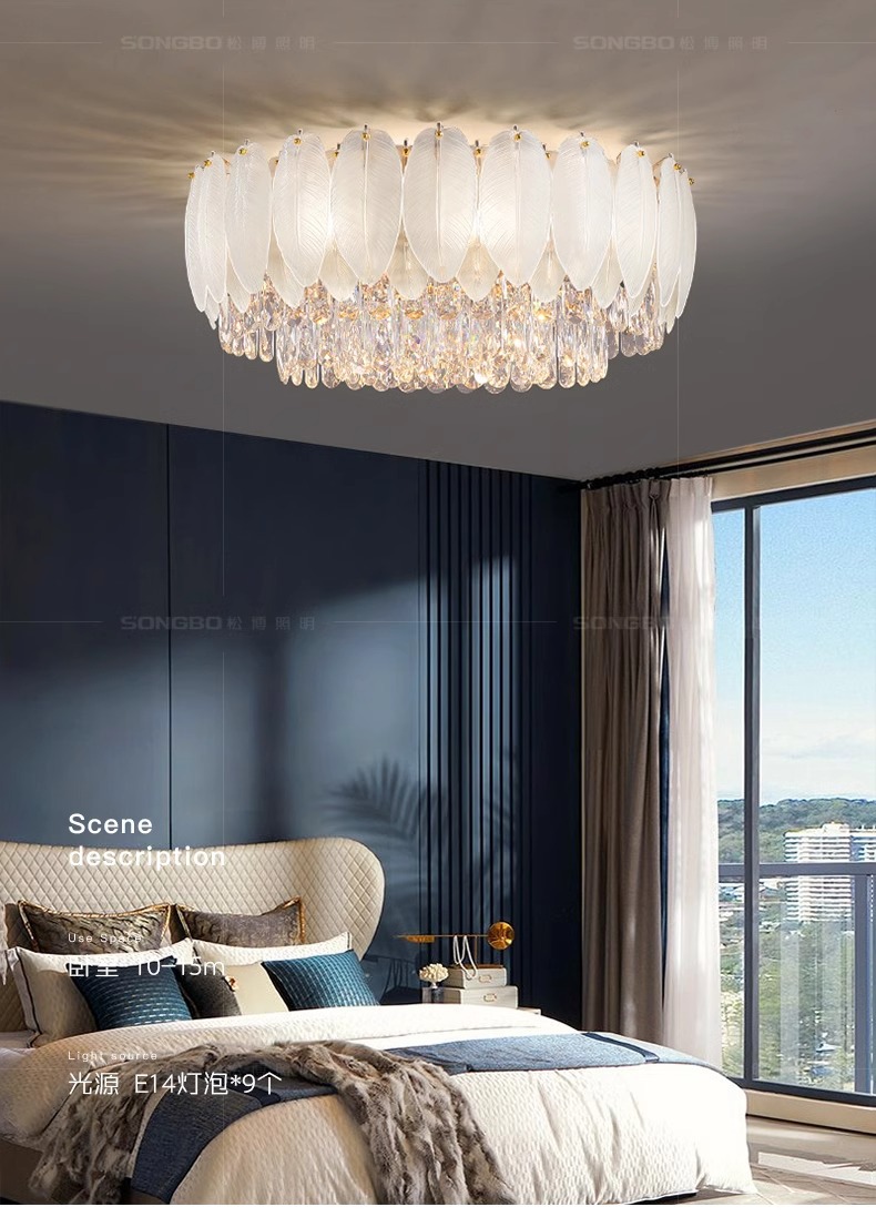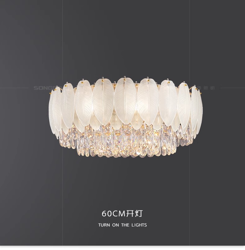 国境を越えた羽毛水晶灯フレンチクリーム風客間灯軽贅沢寝室吸上灯レストラン照明セット2024