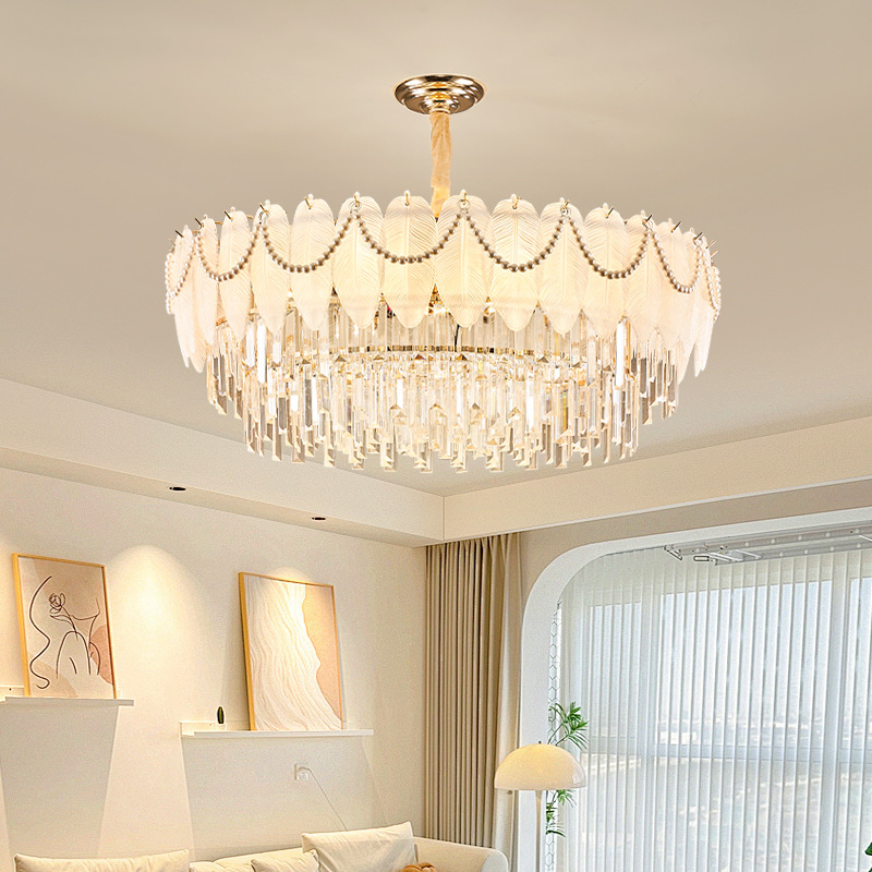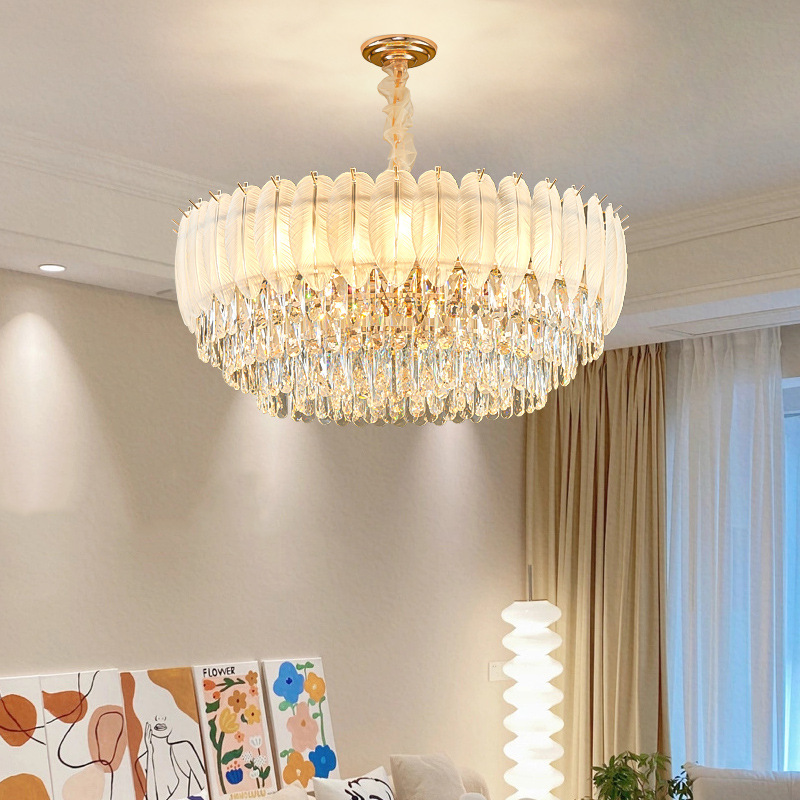 フレンチライト高級クリスタルリビングルームランプフェザーインターネット有名人パーソナライズされたレストランシャンデリアクリームスタイルヴィラマスターベッドルームシャンデリア