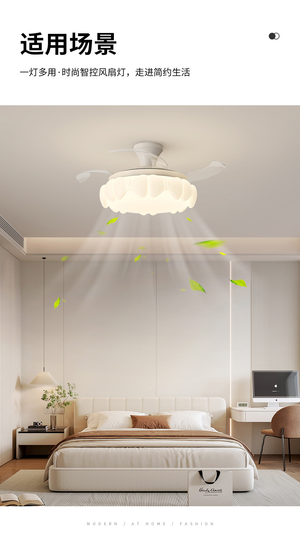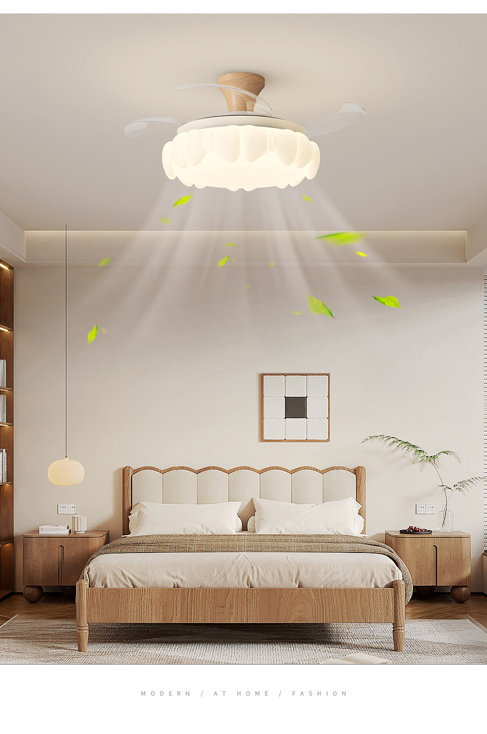 中世スタイルの目に見えないファンライト、強風、静音、リビングルーム、ダイニングルーム、シーリングファンライト、寝室ファン、一体型ファンライト