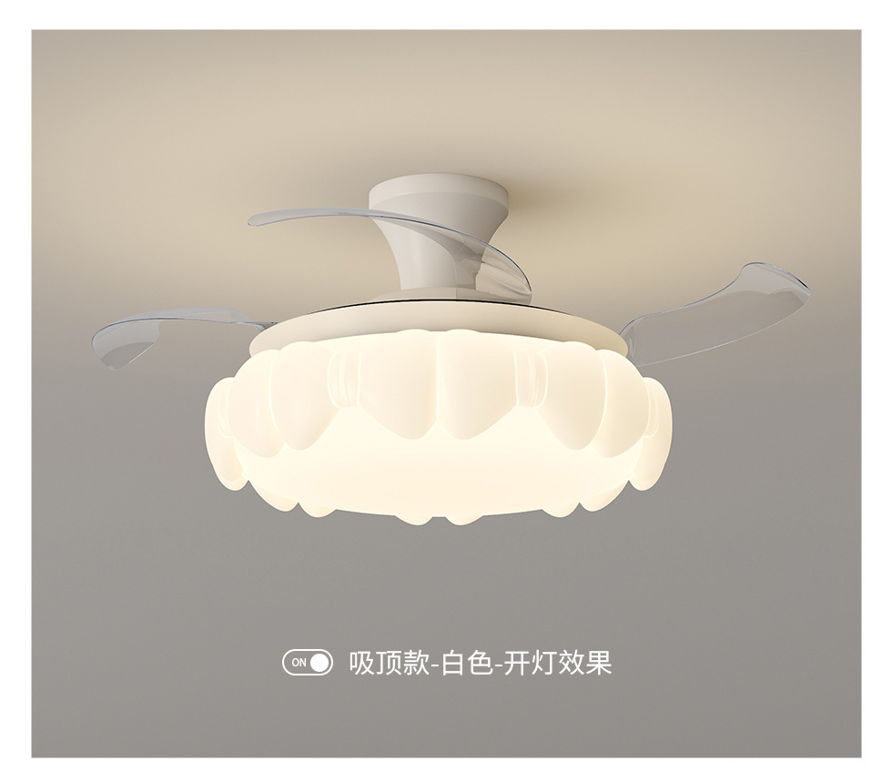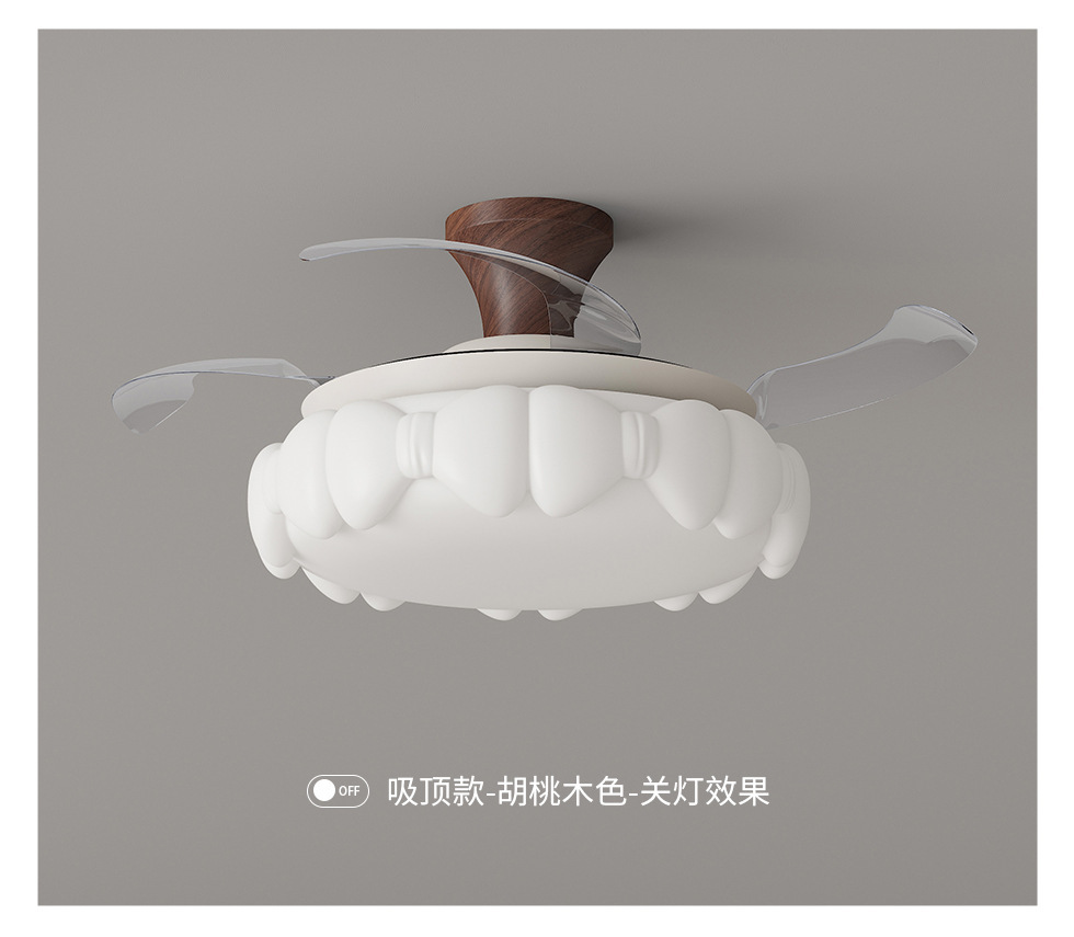 中古クリーム風寝室ファンランプ創意的な雲のリビングレストランのステルスファンランプ知能インバーターファンランプ