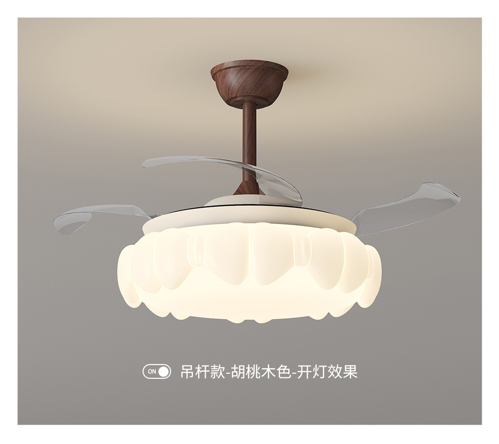 ファンライト高级感胡桃色シーリングライト北欧ダイニングリビングファンシャンデリア寝室柔风ファンライト