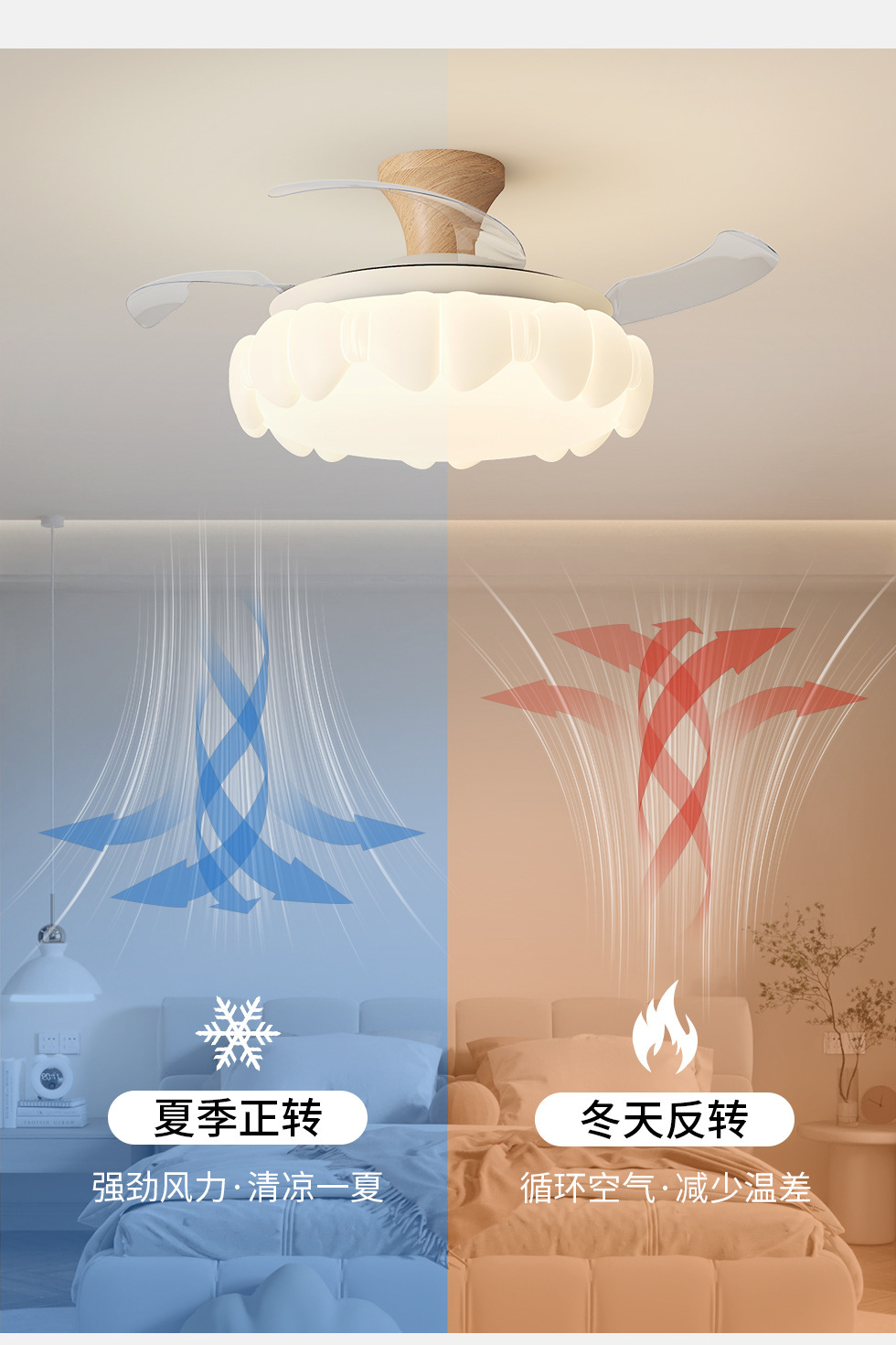 2025新型かぼちゃ寝室柔風吊り扇灯クリーム風主臥レストランファン灯インバータ静音扇風機灯