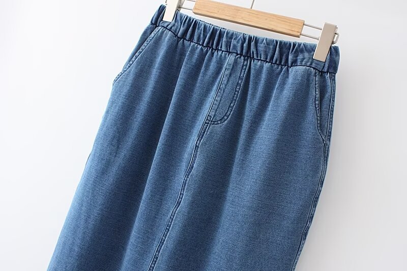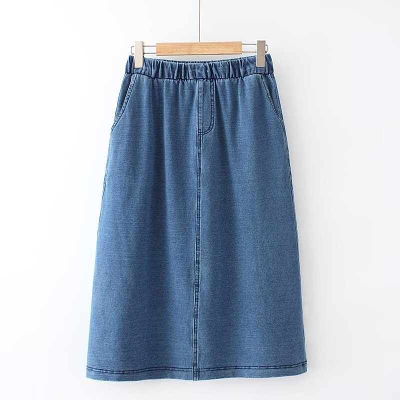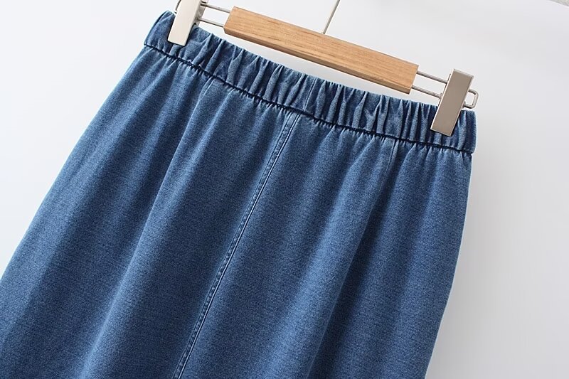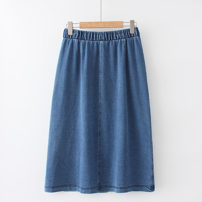 2024秋の大きいサイズのニットのデニムのスカートの高腰は腰の半身のスカートを緩めて太っています。